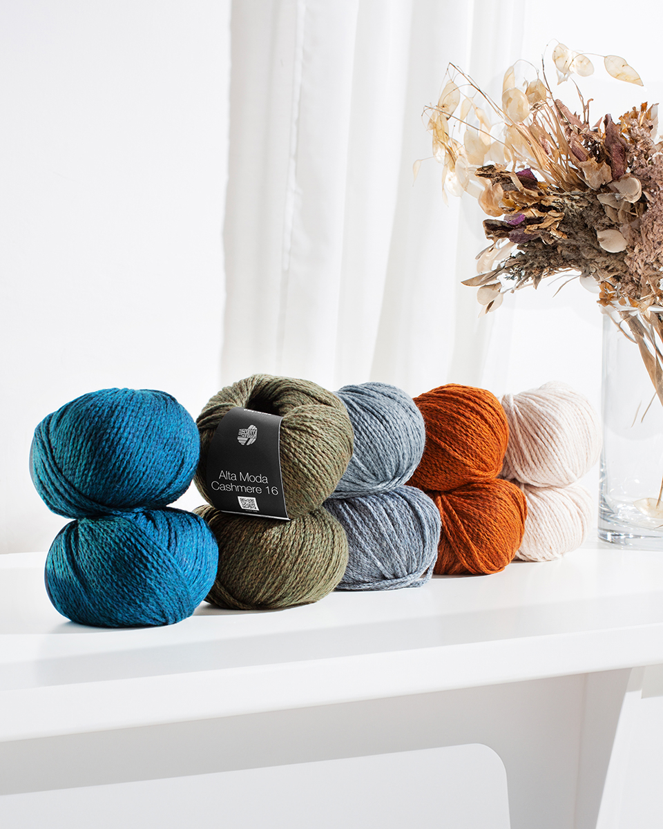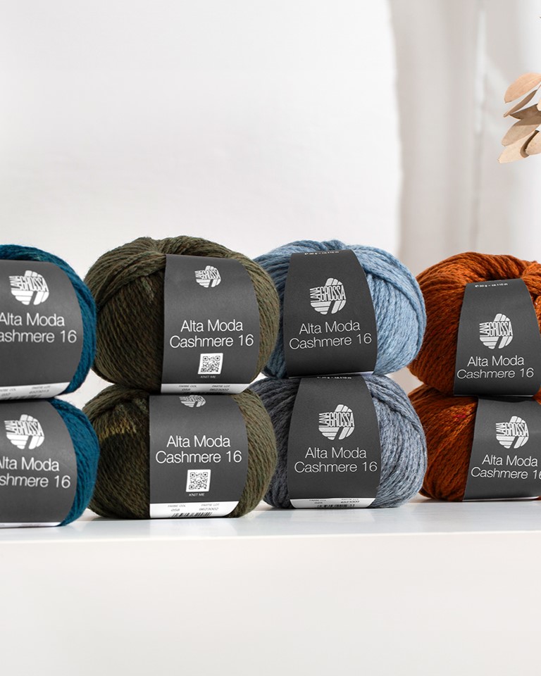 Alta Moda Cashmere 16 er et luksuriøst blødt garn med et eksklusivt udtryk – fremstillet af en fin blanding af cashmere, merinould og genanvendt polyamid. Den innovative kædestruktur gør garnet voluminøst, let og særligt behageligt, ideelt til stilfuldt vinterstrik med høj hyggefaktor. Uanset om det er sweatre, jakker eller accessories – dette garn giver et jævnt maskebillede, behagelig varme og maksimal komfort.