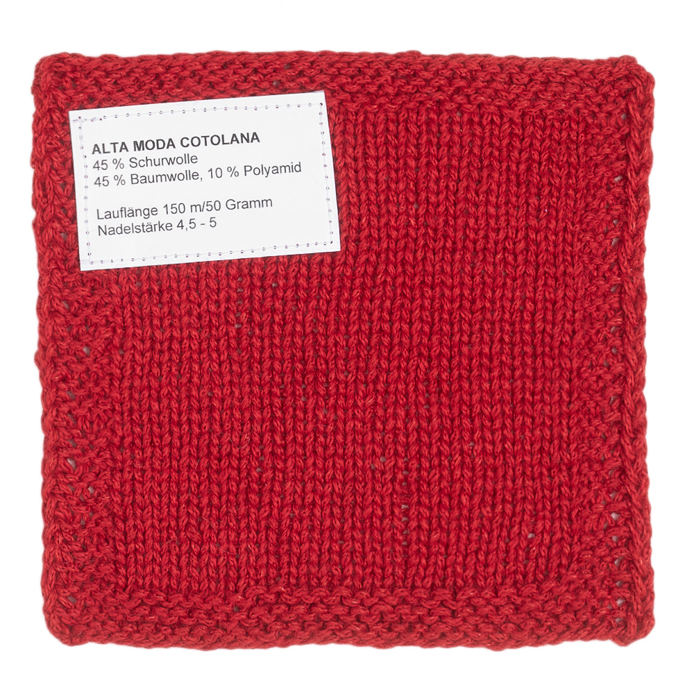 Alta Moda Cotolana er et moderne helårsgarn med behagelig lethed og blød fornemmelse. Den højkvalitets blanding af bomuld, uld og polyamid kombinerer naturlig friskhed med varmende blødhed – ideelt til strik, der kan bæres både forår, efterår og vinter. Den innovative kædestruktur giver volumen med lav vægt og et klart, jævnt maskebillede.