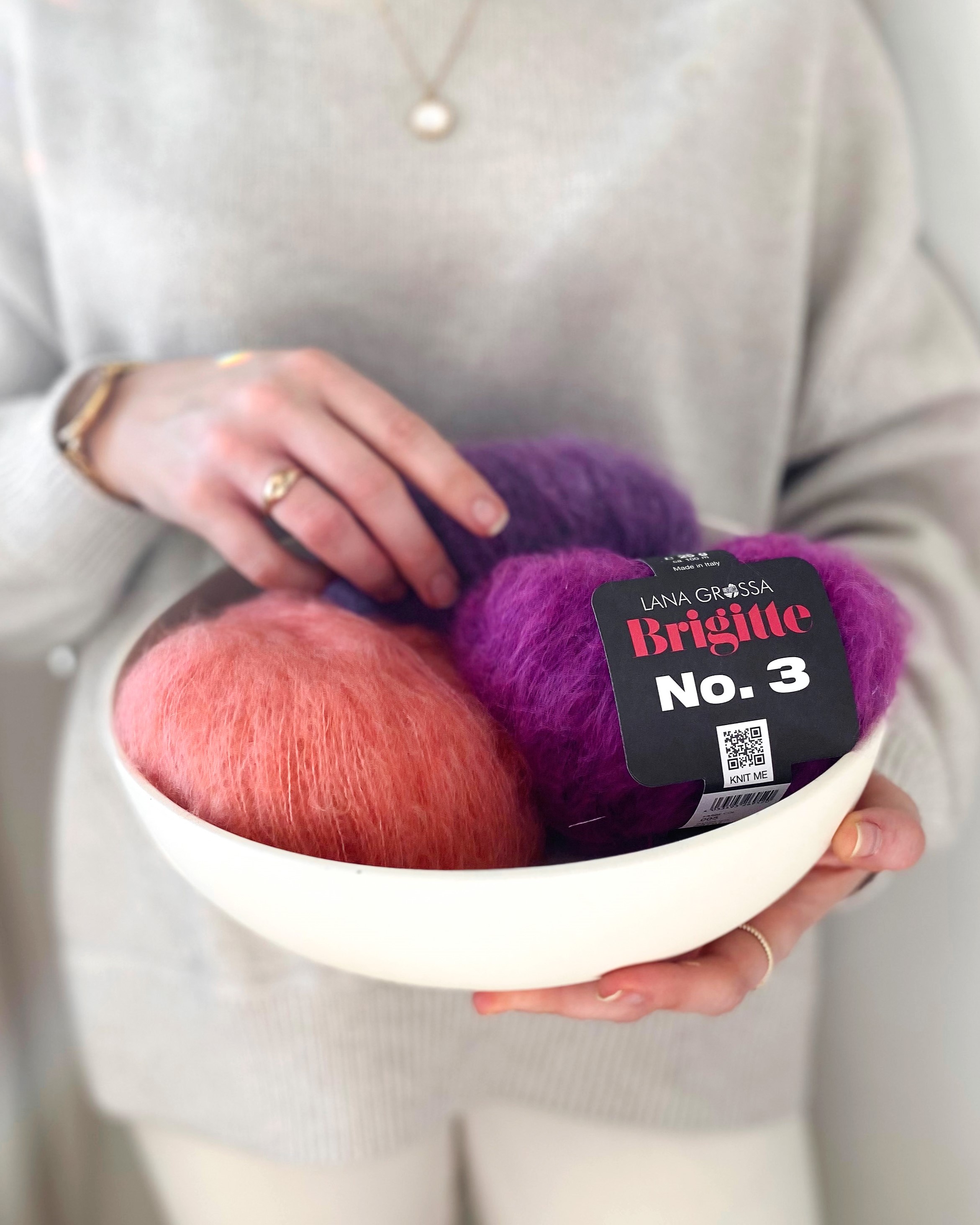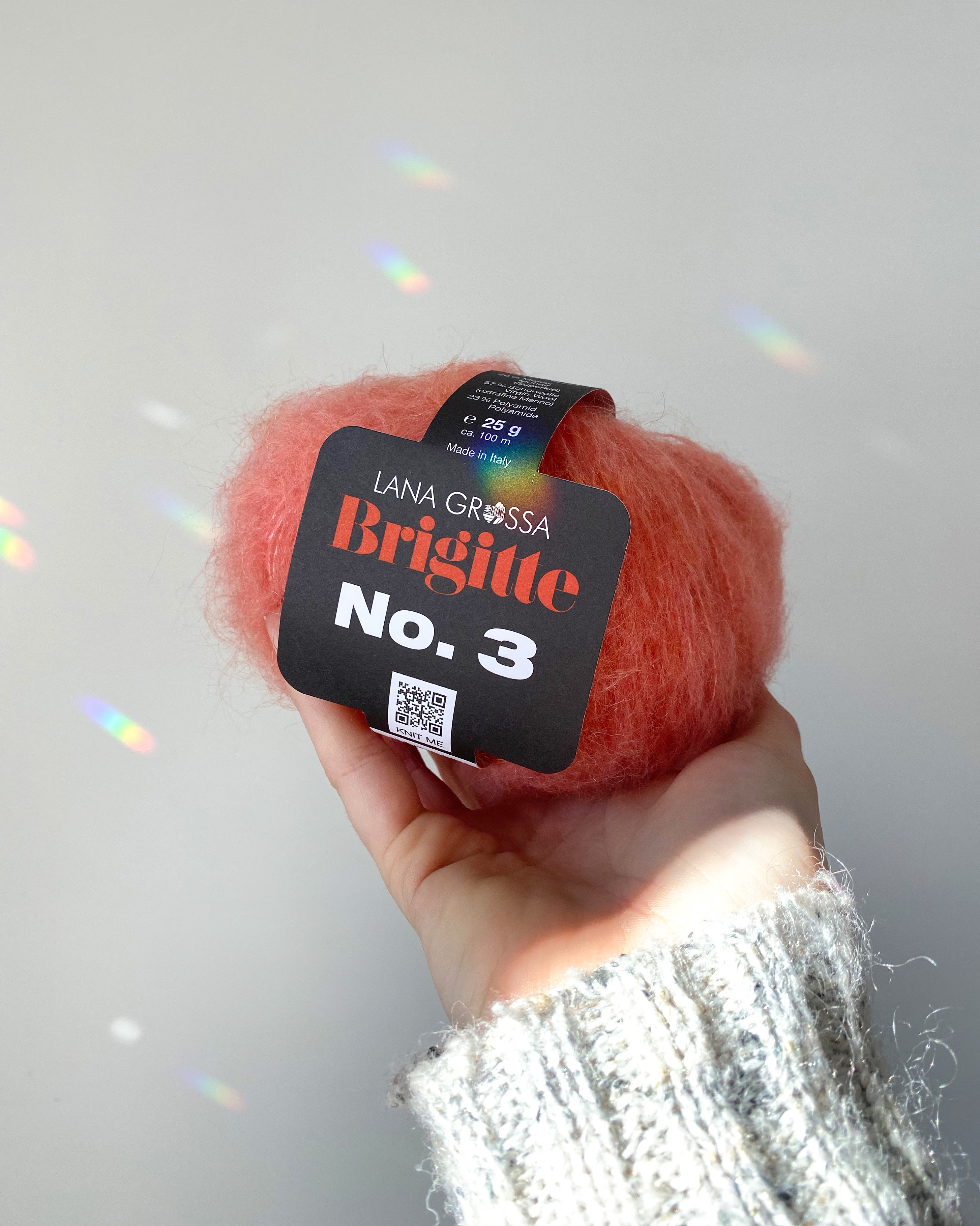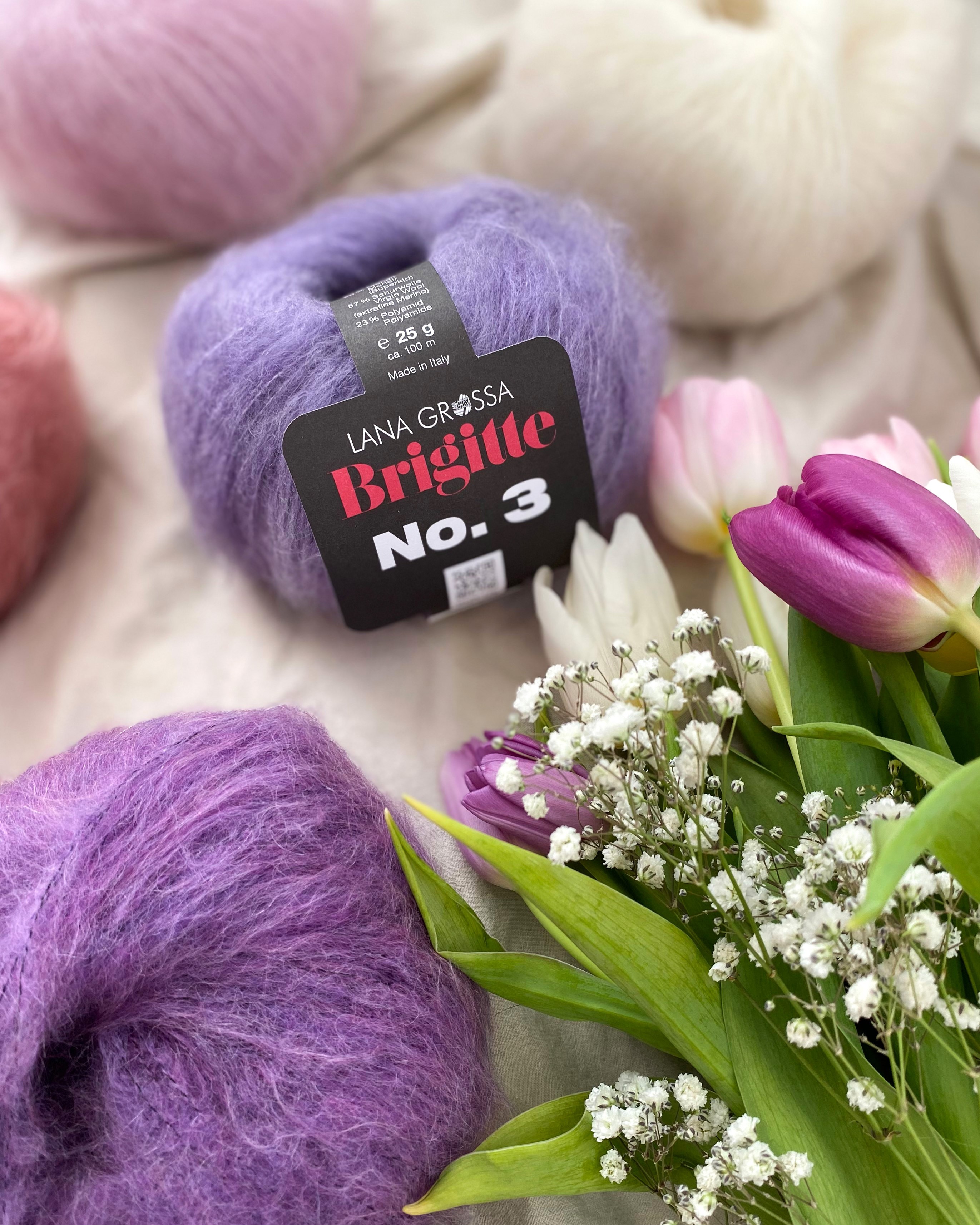 Brigitte No. 3 er et blødt lace-garn med et eksklusivt præg – fremstillet af fineste superkid mohair og merinould. Det forener delikat fluff med diskret transparens og er ideelt til feminine, luftige strikstykker med elegant lethed. Uanset om det strikkes alene eller bruges som følgetråd, giver Brigitte No. 3 sweatre, sjaler eller cardigans en stilfuld, fluffy struktur med et fint maskebillede.