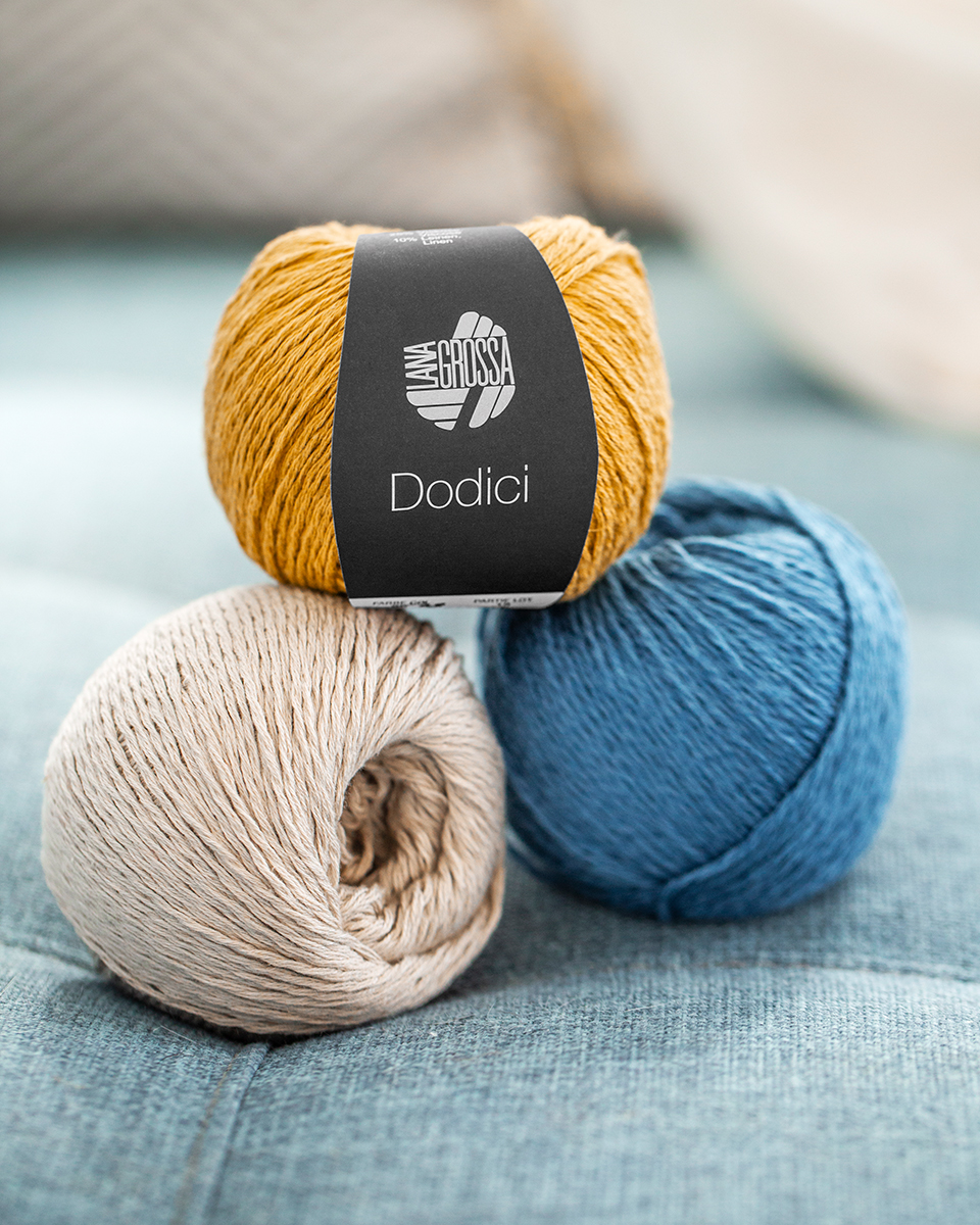 Dodici er et let sommergarn med en levende struktur og en behagelig, tør fornemmelse. Den højkvalitets blanding af bomuld, viskose og hør giver et blødt maskebillede med naturlig karakter og subtil glans. Takket være den strukturerede overflade får hvert strikstykke et særligt friskt, moderne og tidløst udtryk.