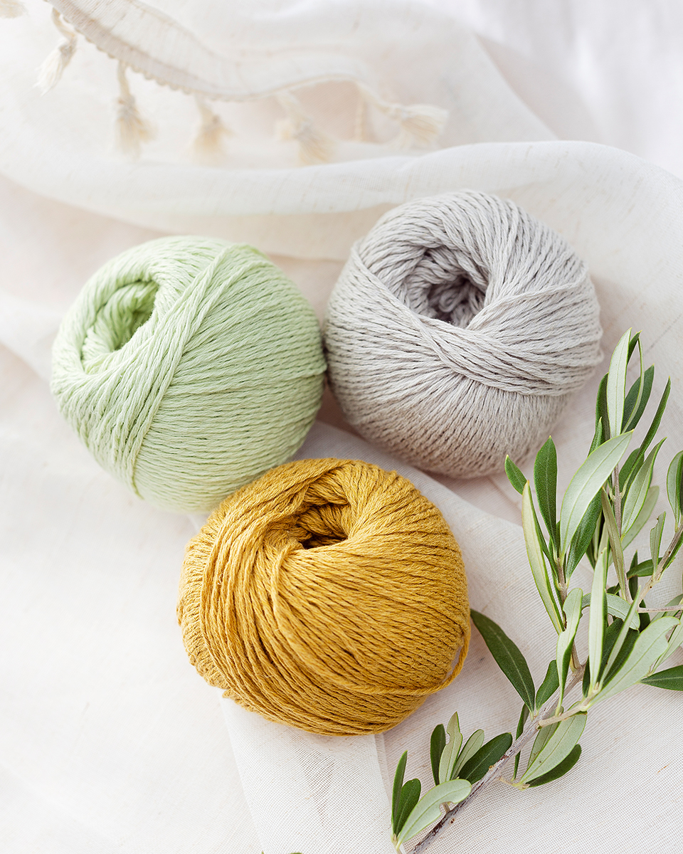 Glat og samtidig voluminøst garn i bomuld, viskose og hør, som giver udtryksfulde strukturmønstre.