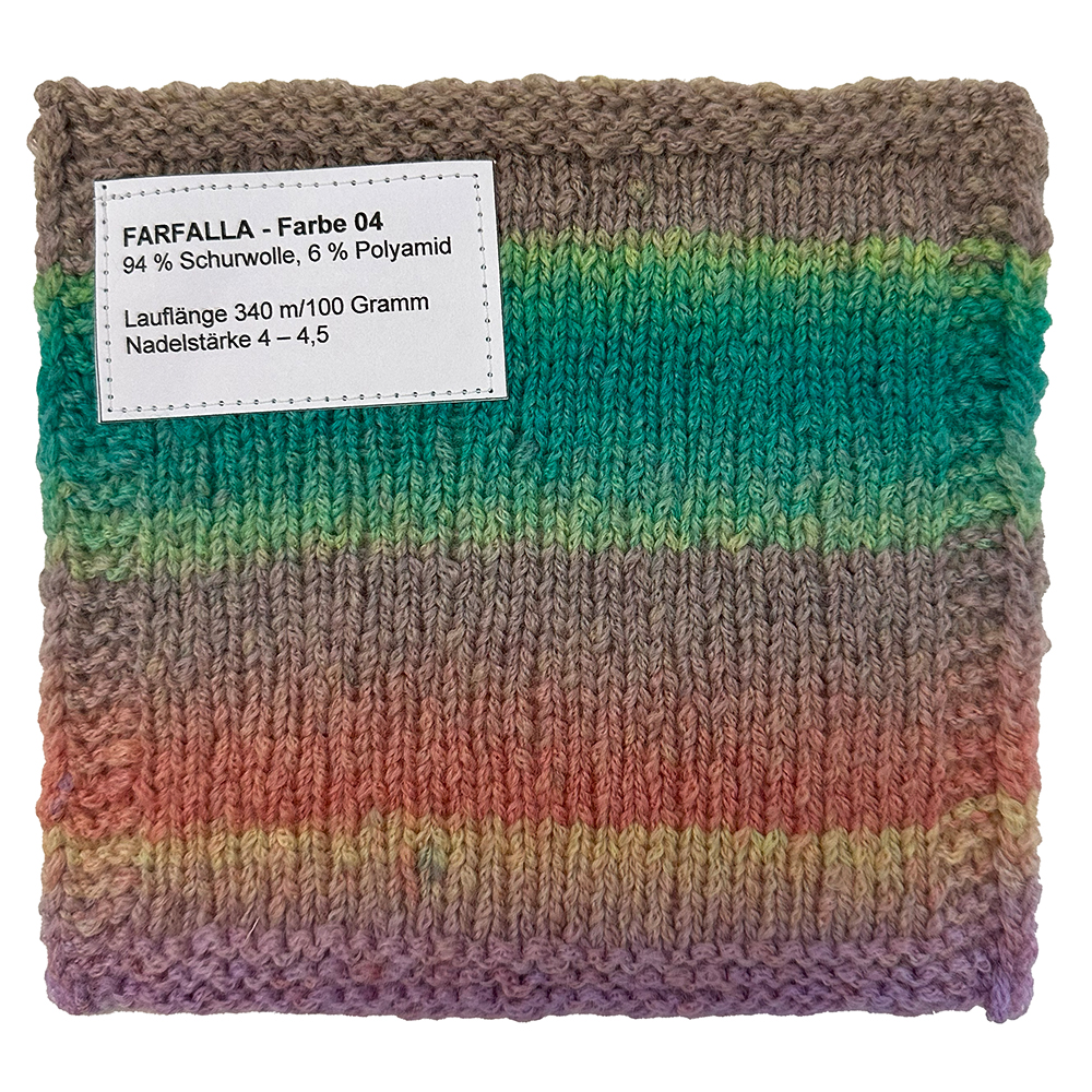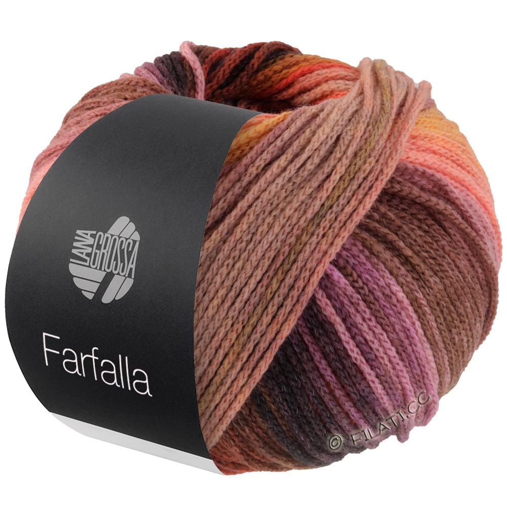 Farfalla er et helt særligt garn: let, blødt og med en fin, livlig tekstur, der giver hvert strikket stykke noget helt særligt. Et særligt højdepunkt er den subtile farvegradient, der udvikles naturligt under strikning. De subtile overgange sikrer et harmonisk og livligt farvespil – uden komplicerede mønstre eller garnskift. Dette skaber automatisk unikke stykker med en blid dynamik.