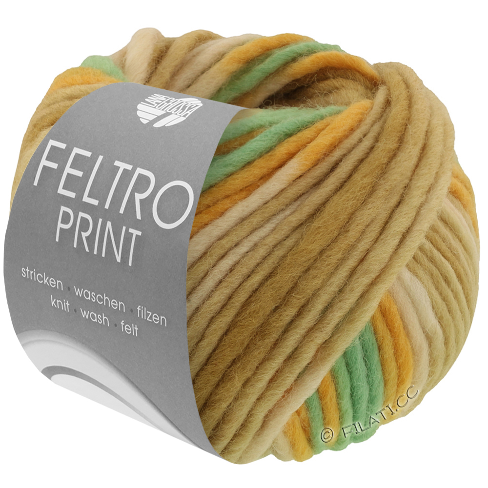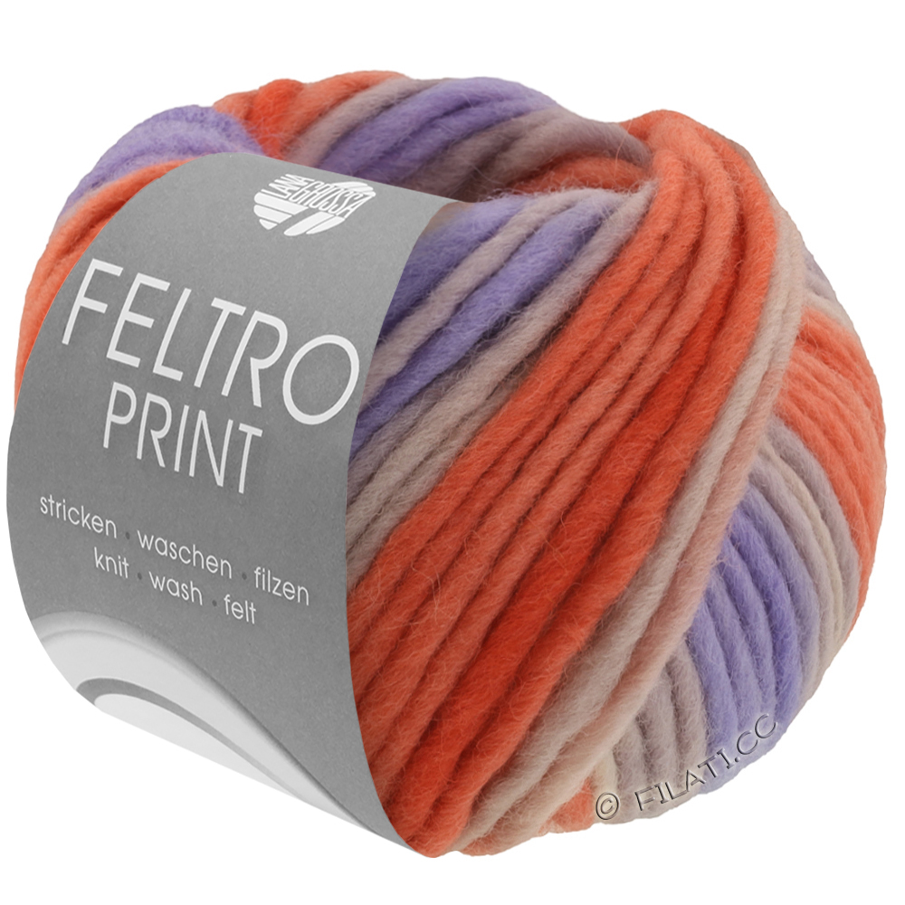 Feltro Print er det farverige filtegarn fra Lana Grossa med varierede farveforløb – perfekt til kreative filtprojekter med det lille ekstra. Ligesom den klassiske Feltro-kvalitet består det af 100 % ny uld og er nemt at arbejde med og filte i vaskemaskinen. Ideelt til tasker, hjemmesko, kurve eller dekorationsobjekter, som med de farverige print får et levende og unikt udtryk helt uden mønsterskift. Hver filteproces giver et enestående resultat!