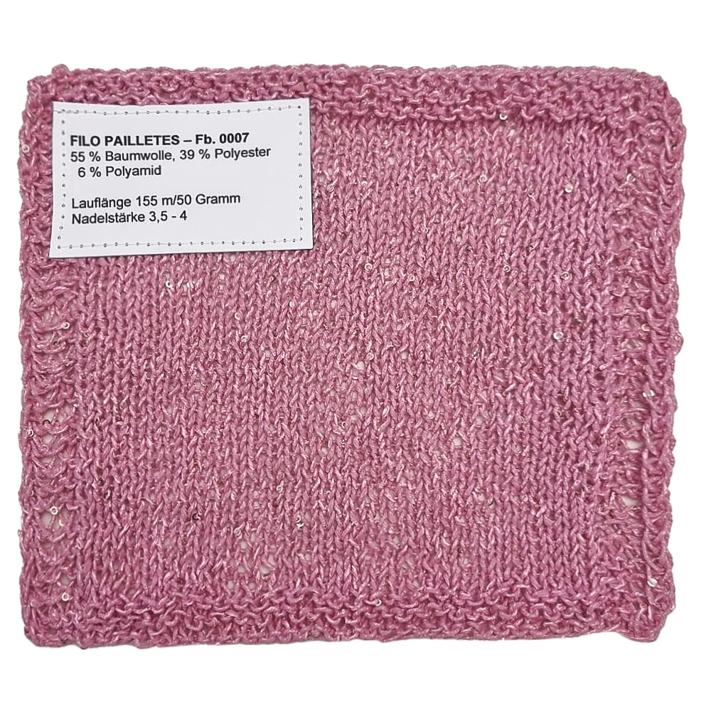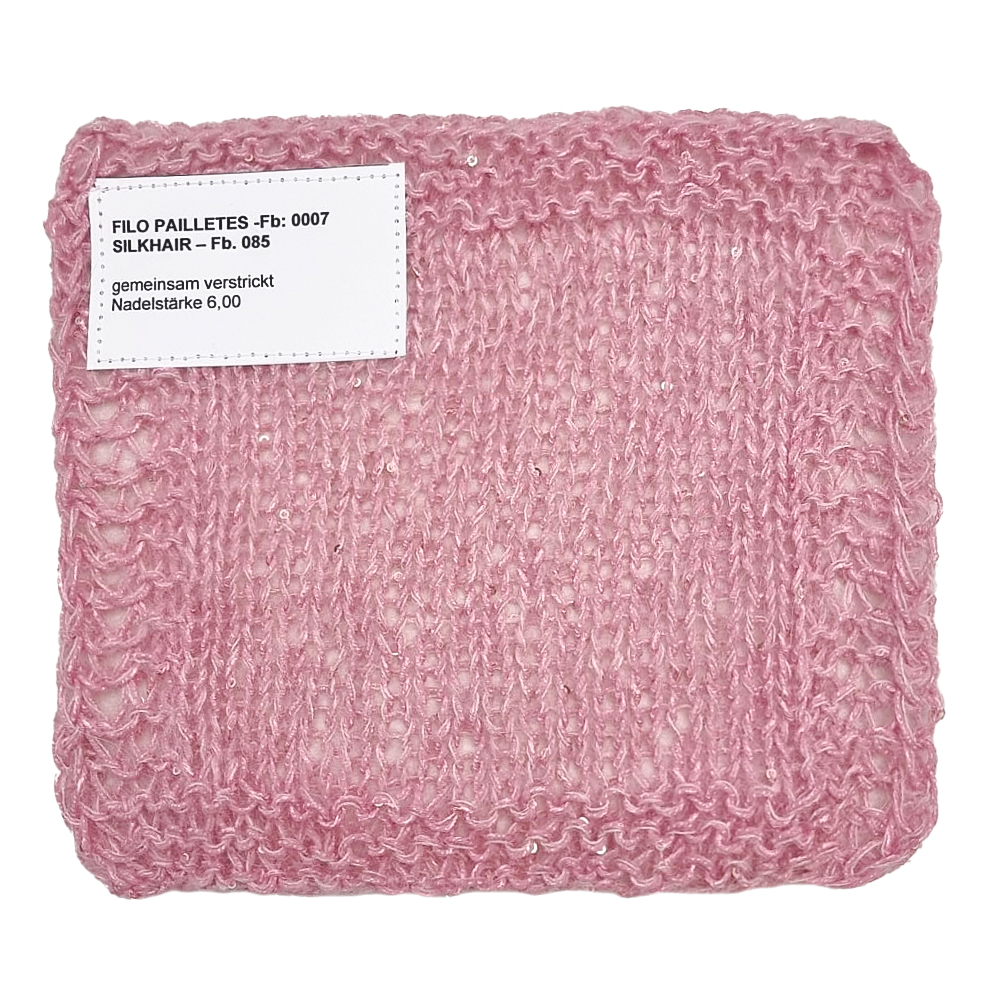 Lana Grossa FILO PAILLETTESinkl. moms., med tillæg af forsendelsesomkostninger, Basispris: 1.380,00 dkr / kgeks. moms, med tillæg af forsendelsesomkostninger, Basispris: 1.159,60 dkr / kg