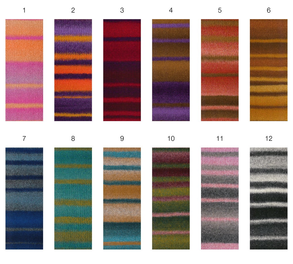 Voluminøst alpacagarn med effektstruktur og gradientstriber