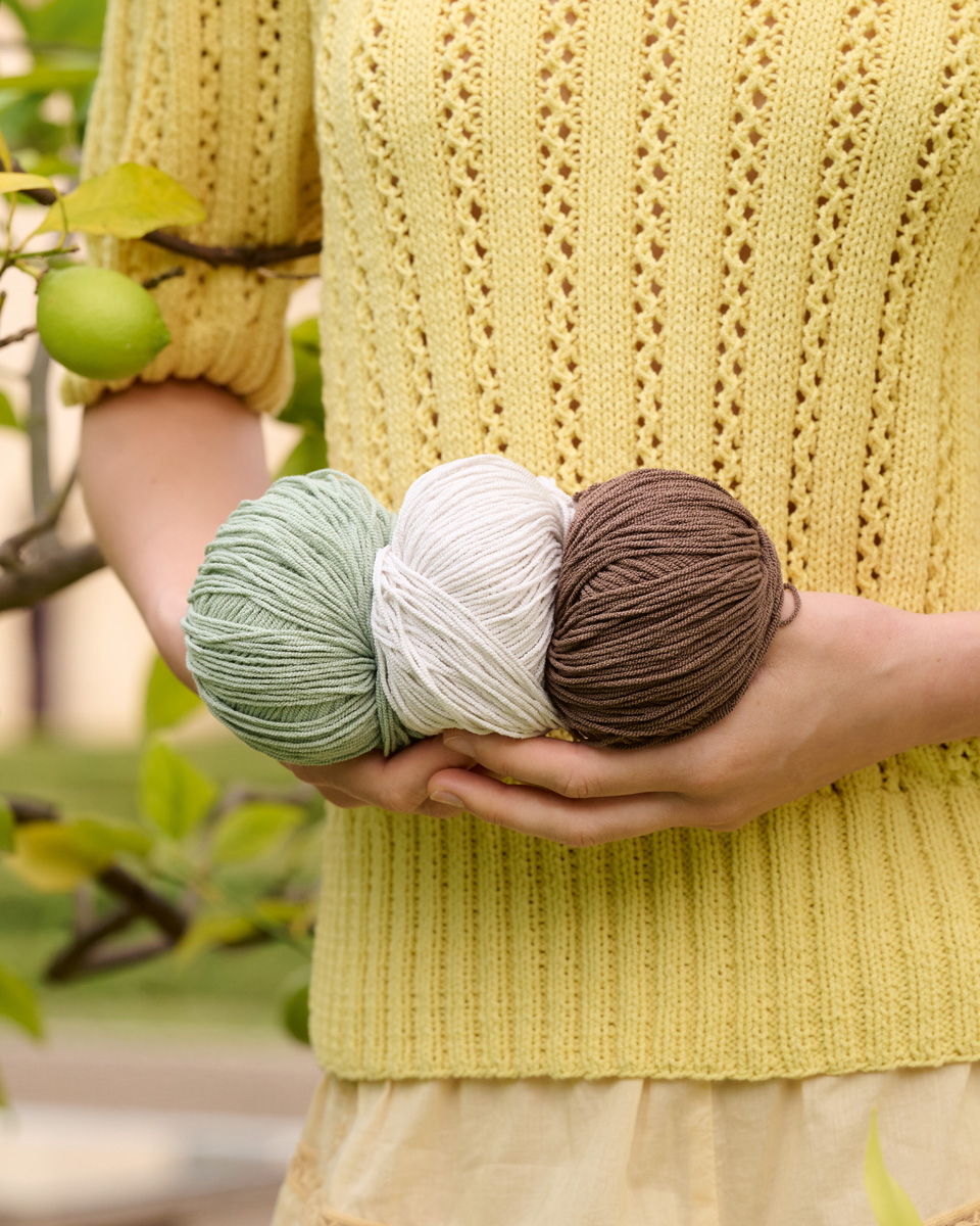 Seks stærkt snoede enkelttråde giver dette eksklusive crepegarn struktur og et jævnt netmønster, mens polyamidfibrene giver ekstra stabilitet.
