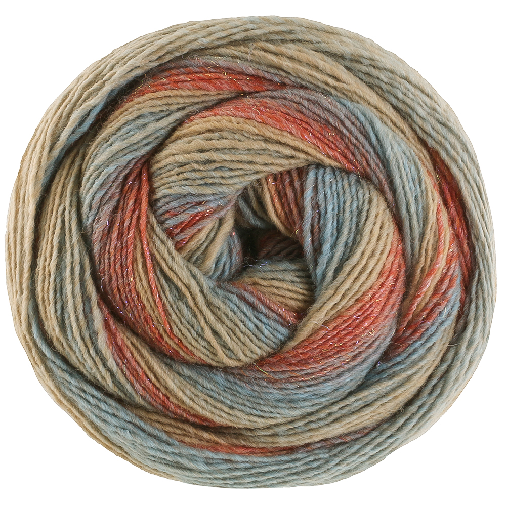 1 ply garn i en gradientfarve med en subtil lurex-effekt
