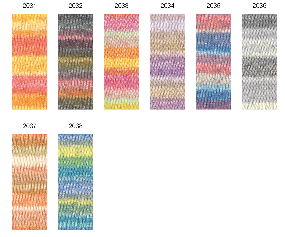 Gomitolo Mambo er et farverigt forløbsgarn med et levende udtryk. De harmonisk afstemte farveskift kombineret med en let struktureret garnoverflade gør hvert strikstykke til et ægte blikfang – helt uden mønsterskift.
