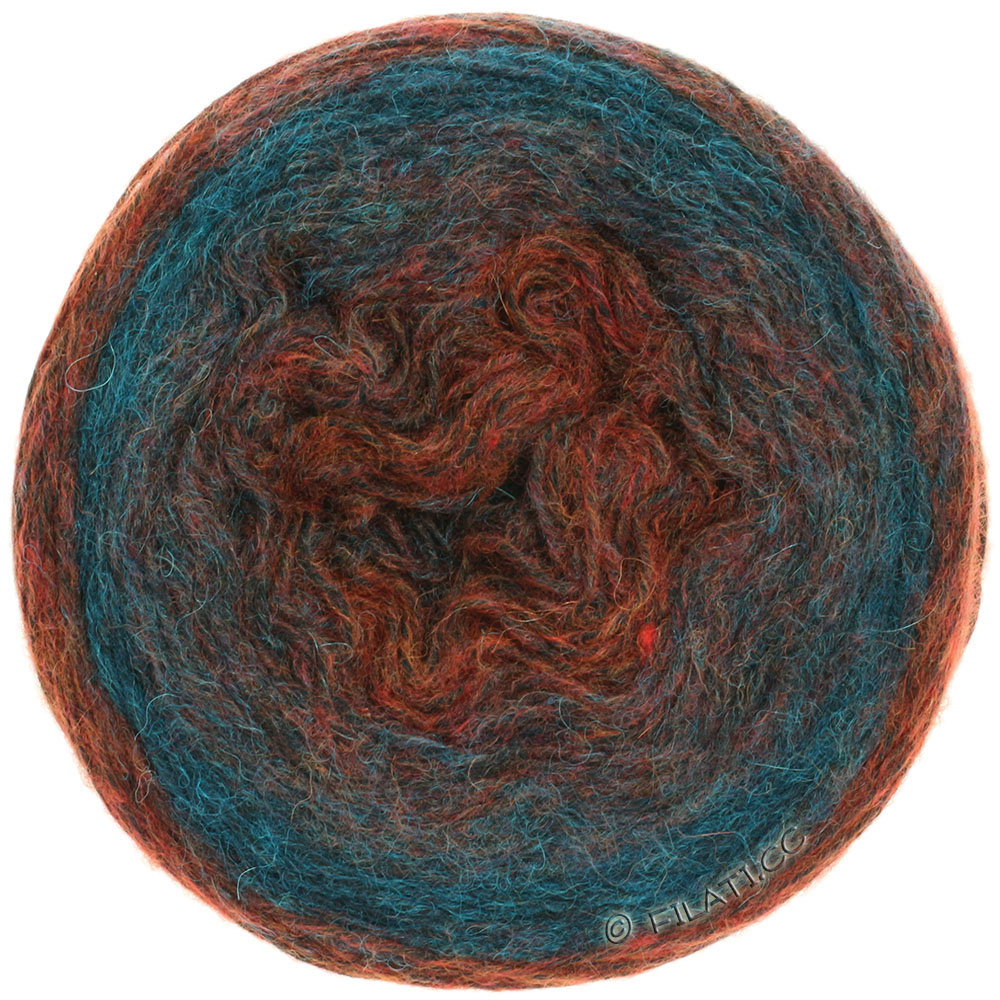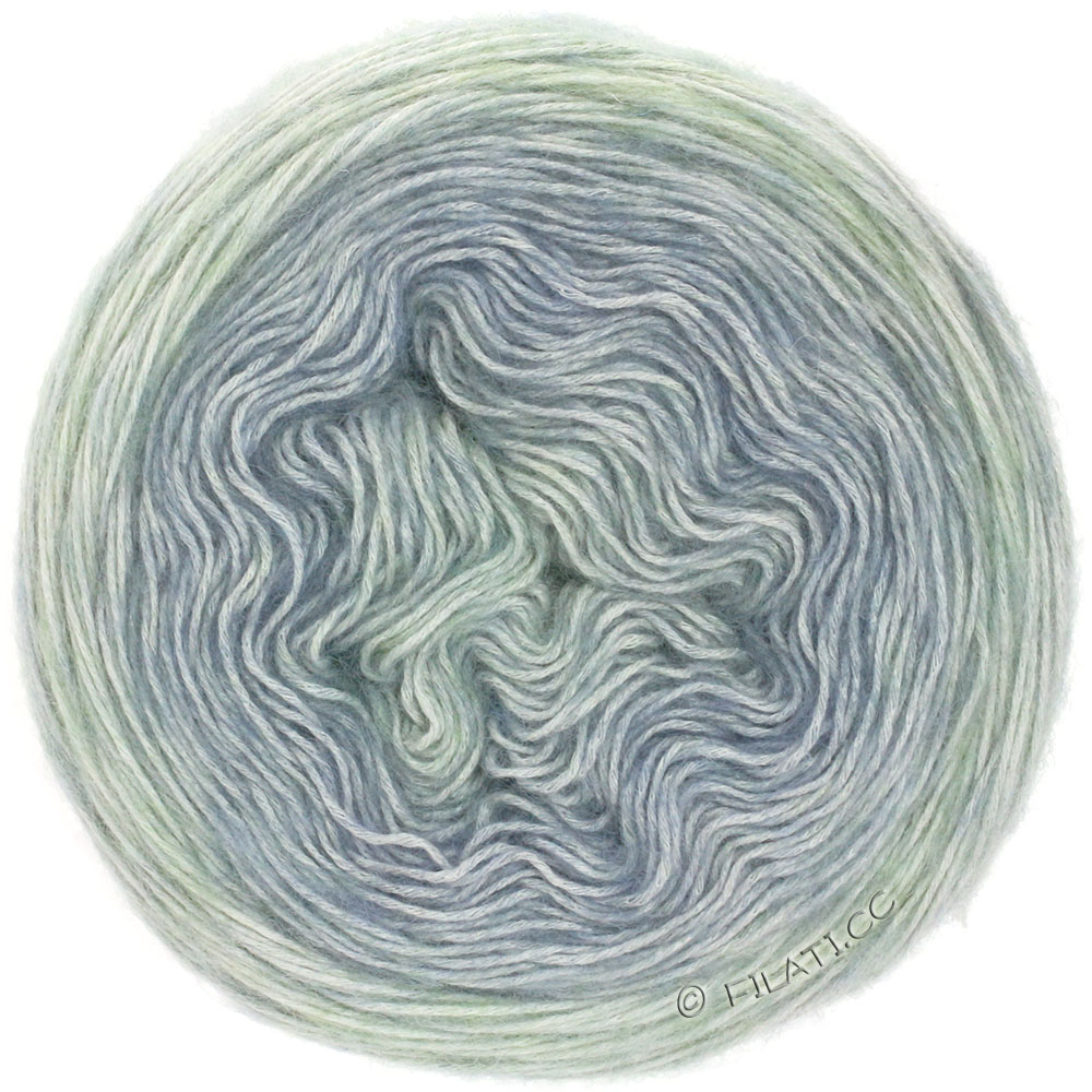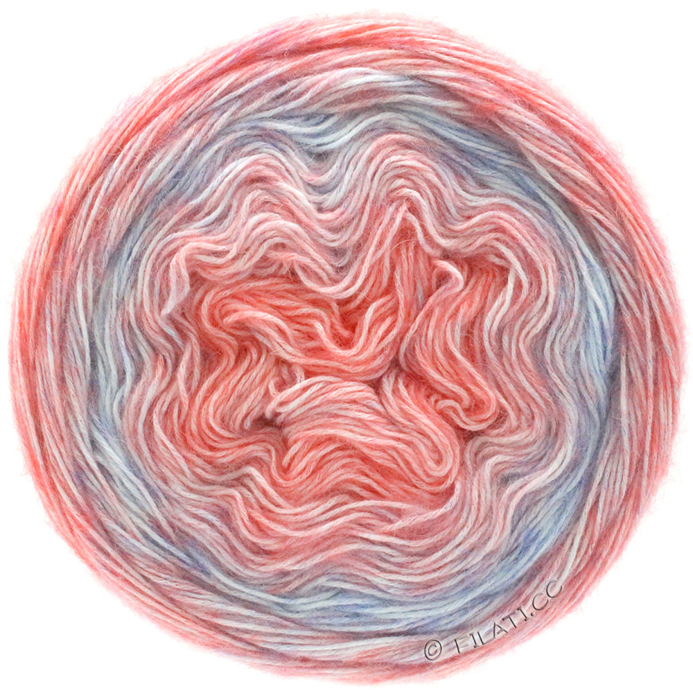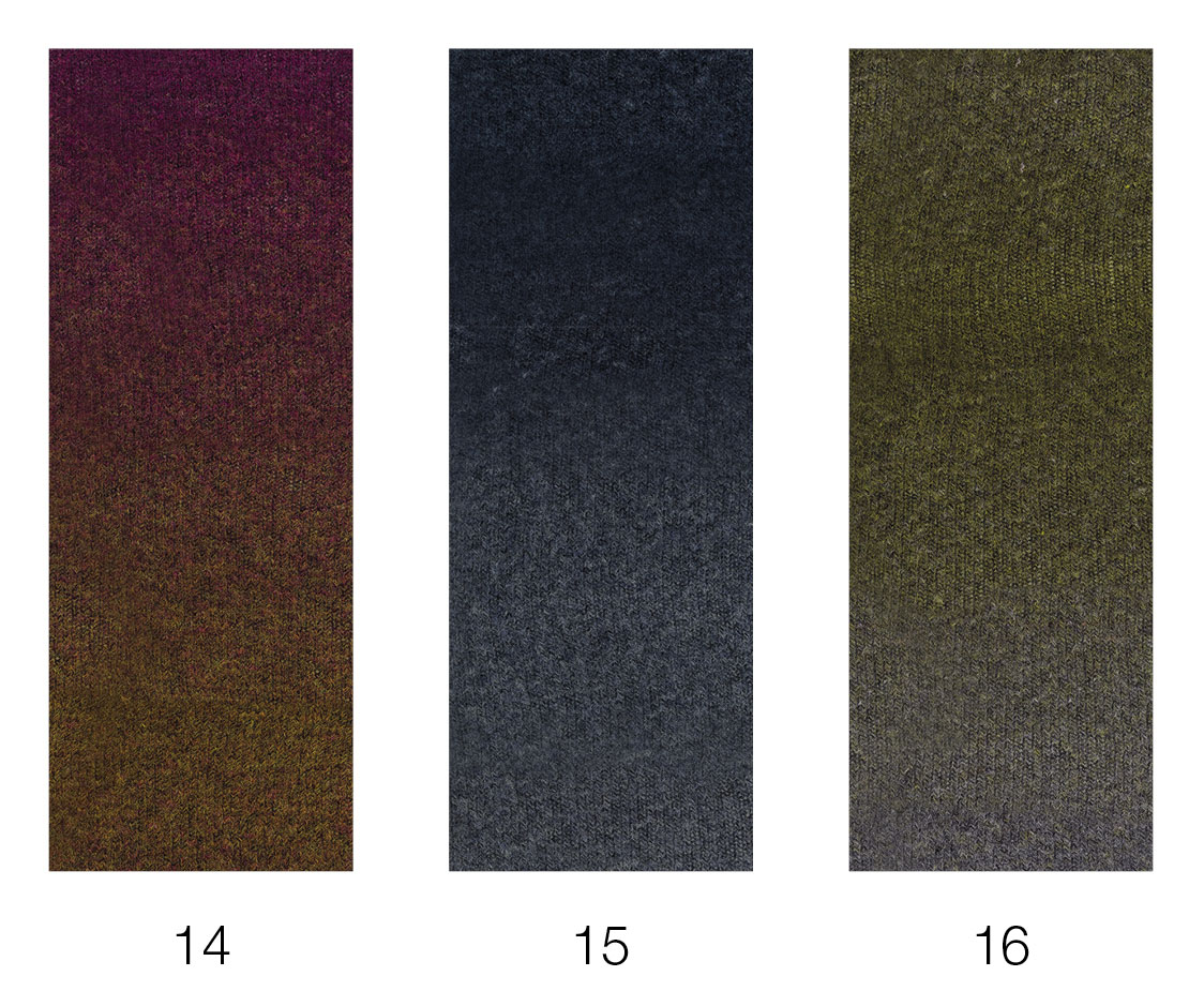 Løst, fluffy og selvstribende garn med graduerte fargeoverganger i 70% bomuld, 19 % ren, ny merinould og 11% babyalpaca.