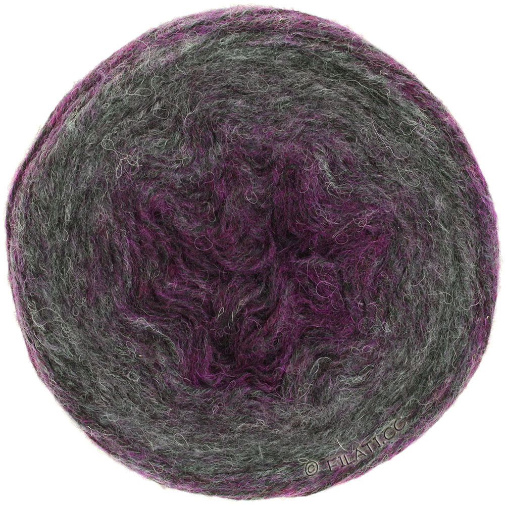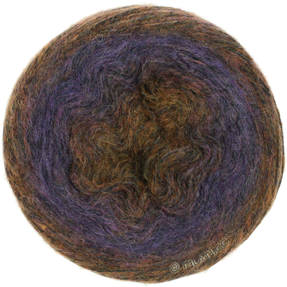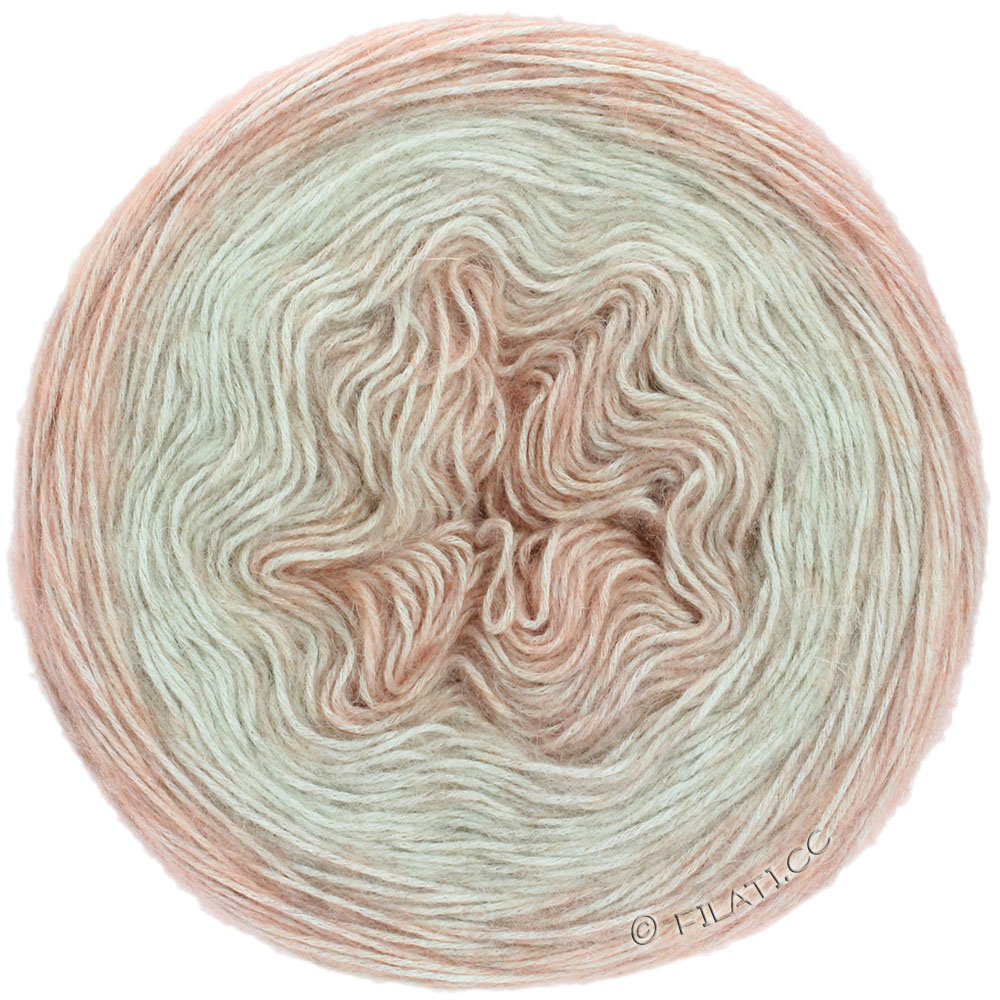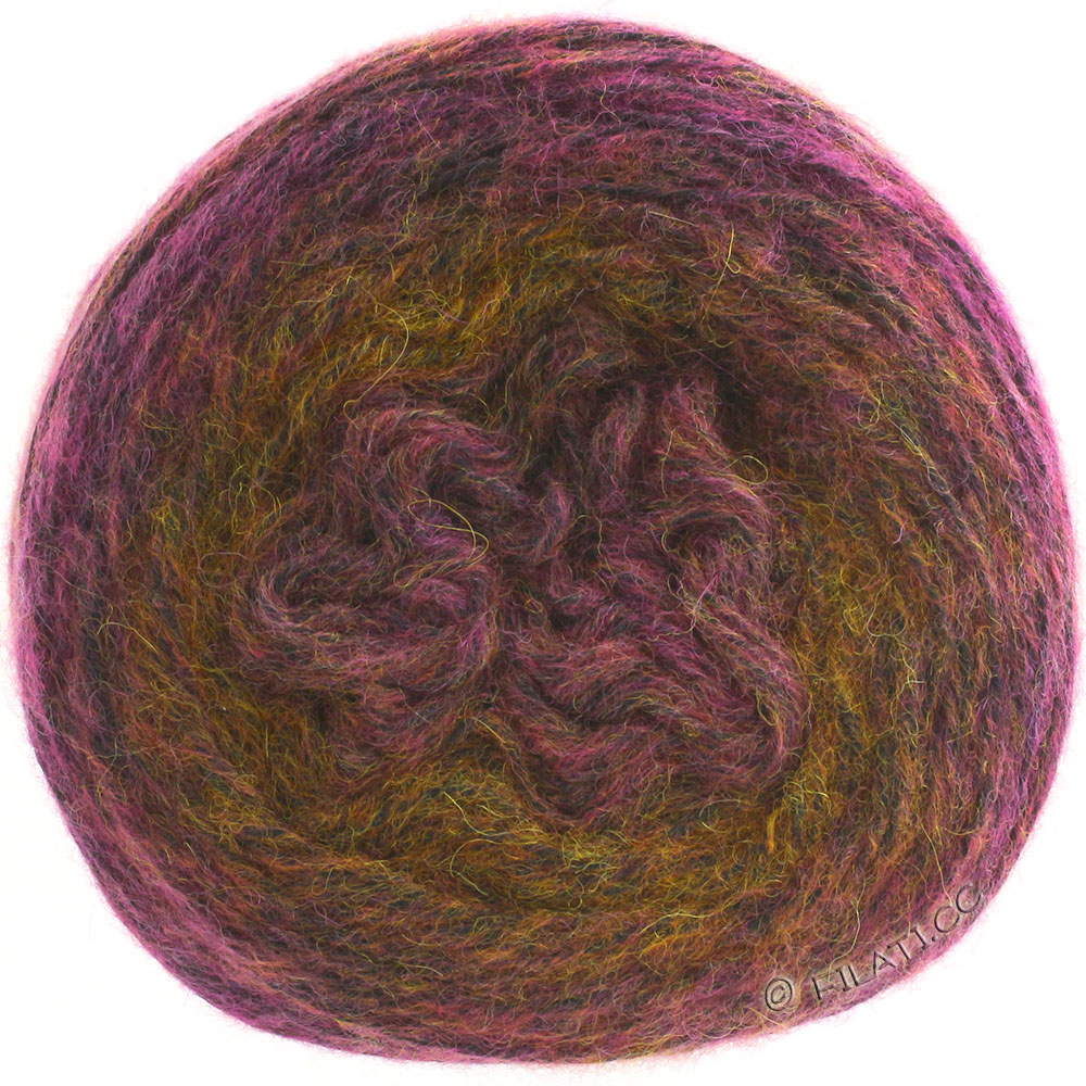 Løst, fluffy og selvstribende garn med graduerte fargeoverganger i 70% bomuld, 19 % ren, ny merinould og 11% babyalpaca.