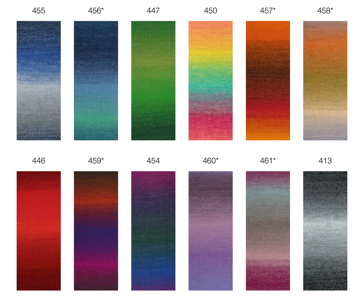 Let tvundet selvstribende garn med graduerte fargeoverganger i 60% ren ny uld med 40% kunstfiber for bedre holdbarhed.