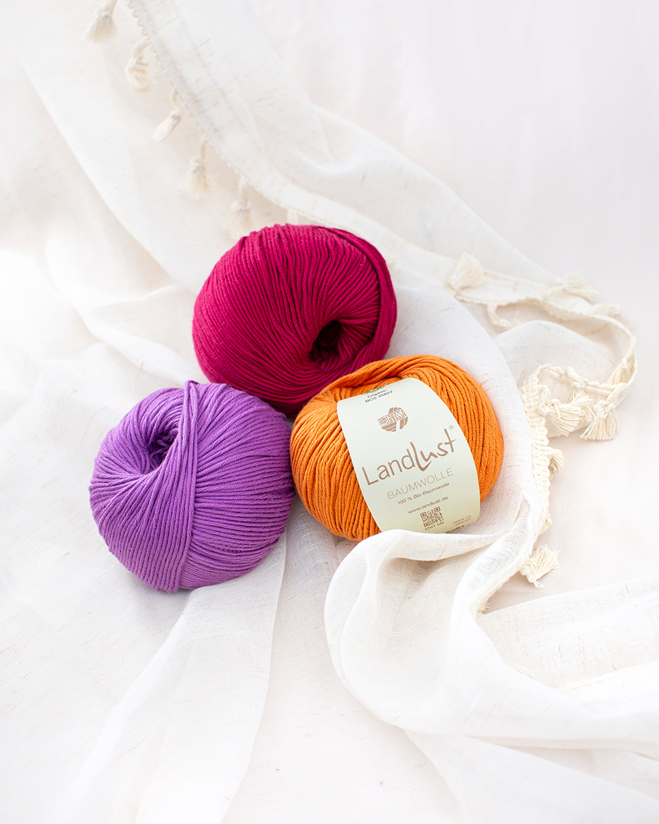 Landlust Bomuld er et naturligt, blødt garn af 100 % økologisk bomuld, udviklet i samarbejde med magasinet Landlust. Det har et behageligt, fyldigt maskebillede. Takket være den hudvenlige, GOTS-certificerede økokvalitet er det også ideelt til sensitiv hud.