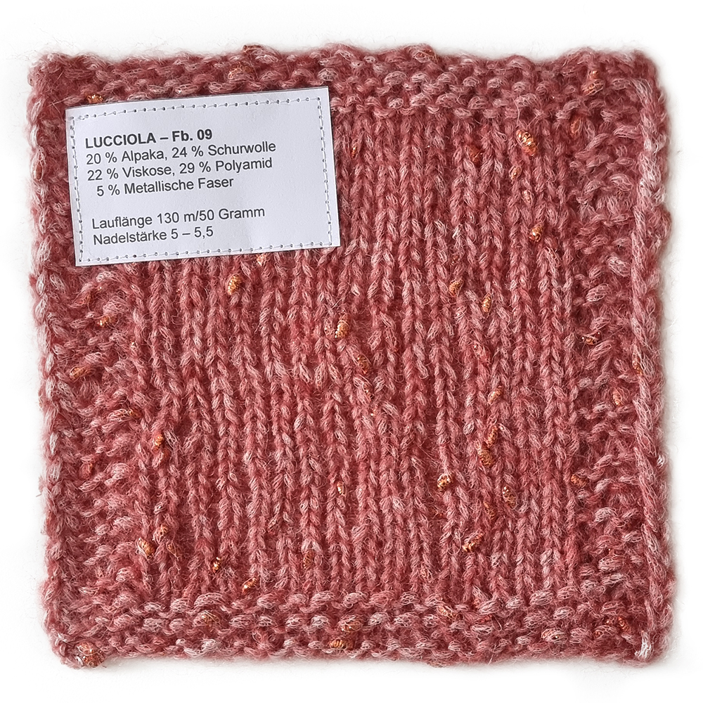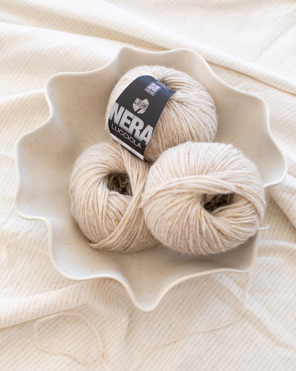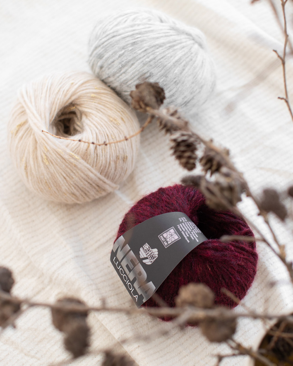 Lana Grossa Lucciola er et fint, glitrende garn, der giver ethvert strikkeprojekt et elegant touch. Den sarte glanstråd skaber levende effekter, som især kommer til sin ret i tørklæder, sjaler og festlige overdele. Let og behageligt at arbejde med – perfekt til moderne, sofistikerede strik med et strejf af glamour.