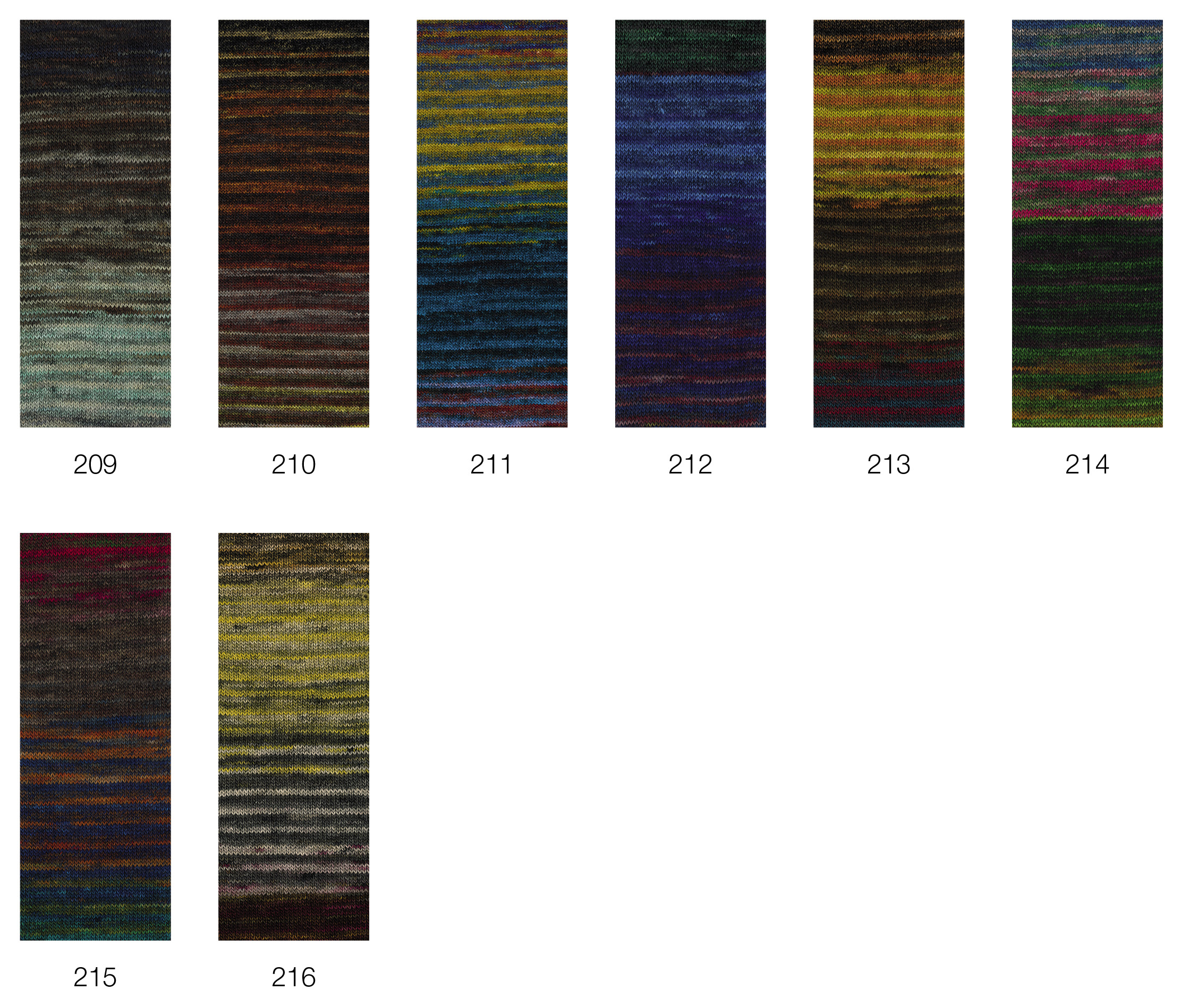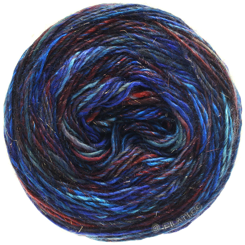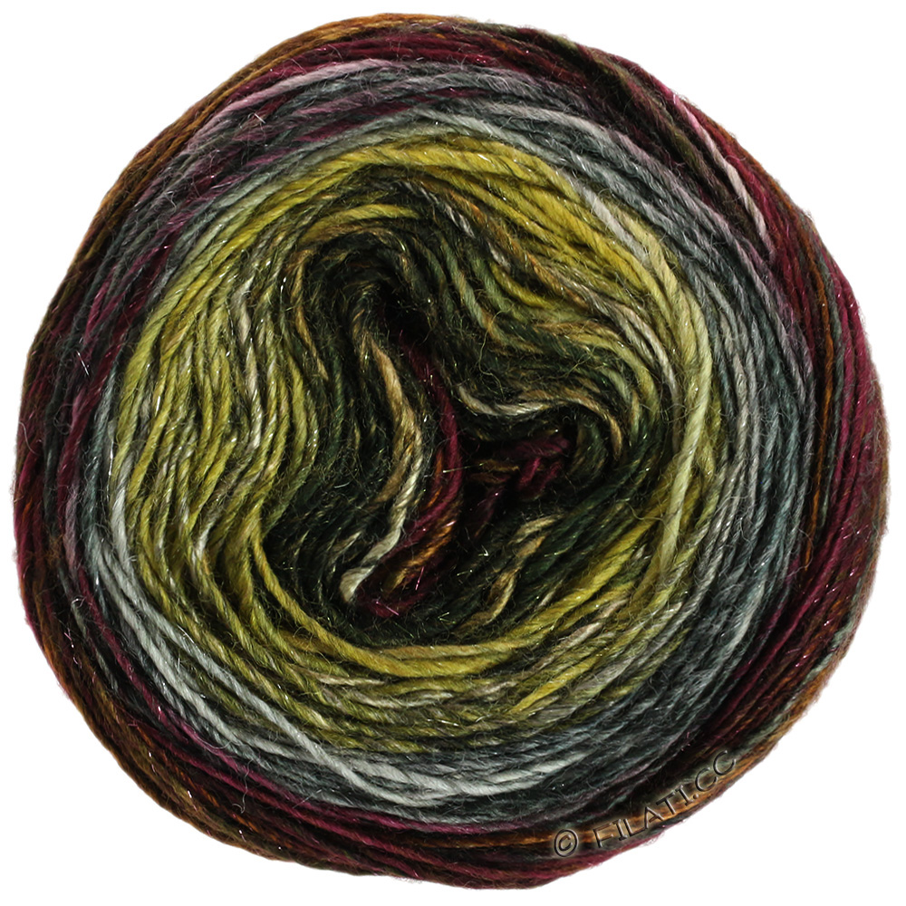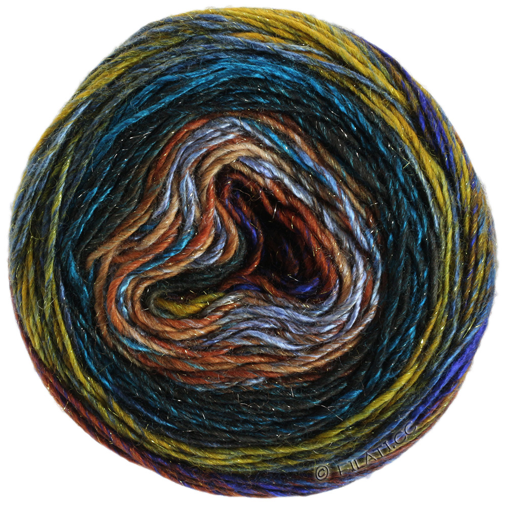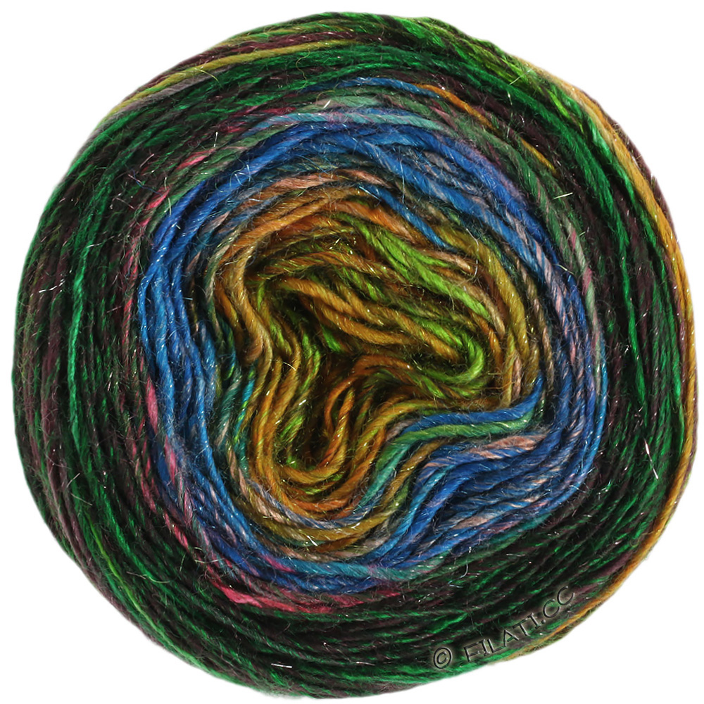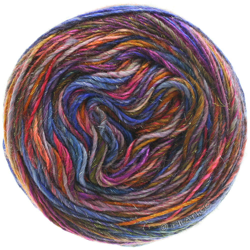Flerfarvet trykt 1-tråds blandingsgarn med let glanseffekt, i 40% ren, merino uld.