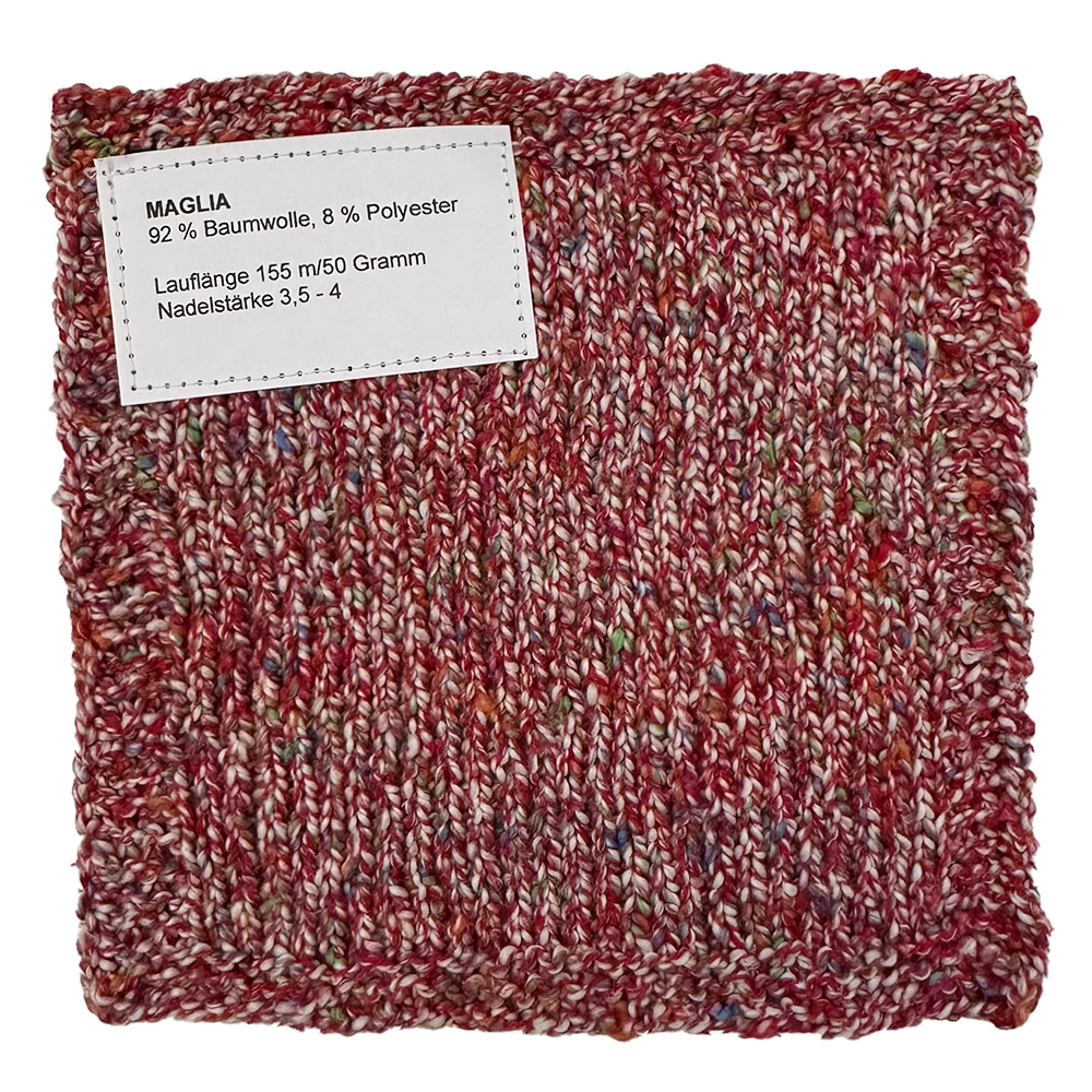 Maglia er et moderne sommer-tweedgarn af blød bomuld, som er tvundet sammen med et farverigt effektgarn. Det skaber et levende, struktureret maskebillede med diskret farvevariation – perfekt til strikkeprojekter med naturlig karakter og et moderne touch. Let, åndbart og behageligt mod huden er Maglia ideelt til sommersweatre, toppe, jakker eller accessories, der imponerer med struktur og farvespil.
