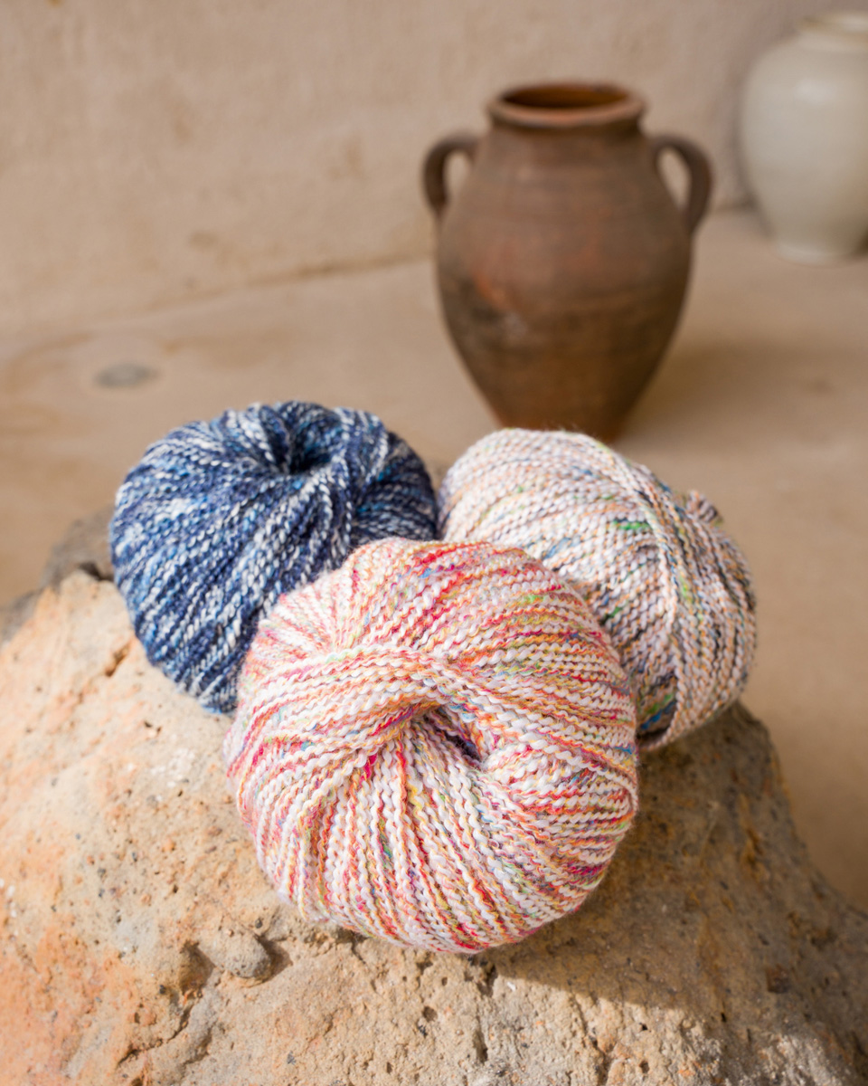 Sommerligt tweedgarn i bomuld, tvundet med et farverigt effektgarn