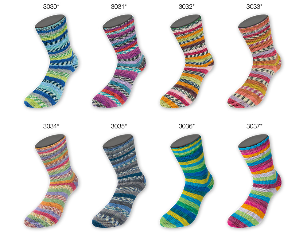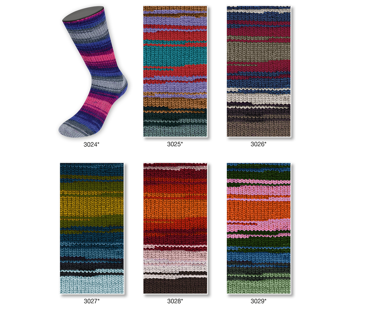 Klassisk strømpegarn i 80% ren ny uld. Flerfarvet og selvmønstrende.