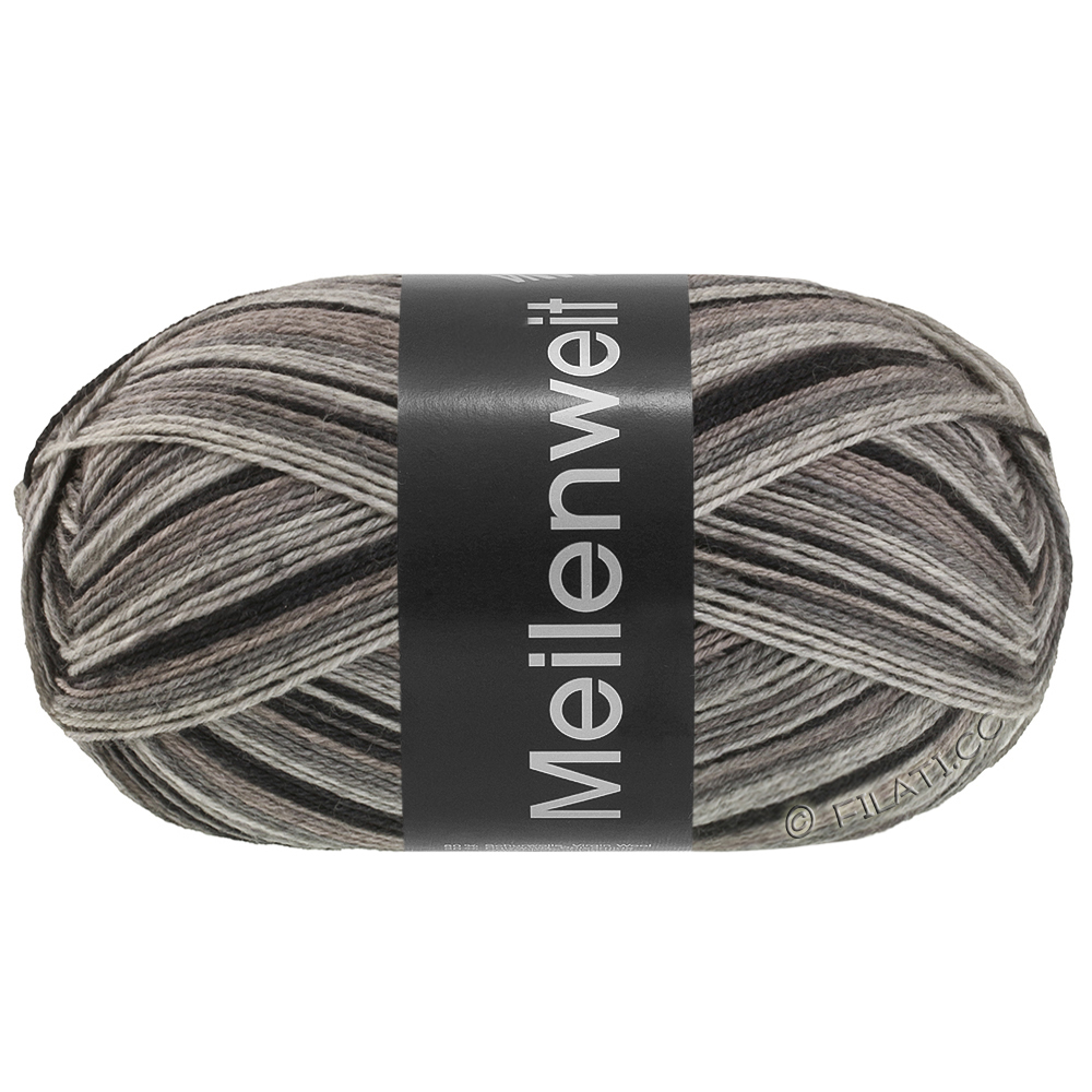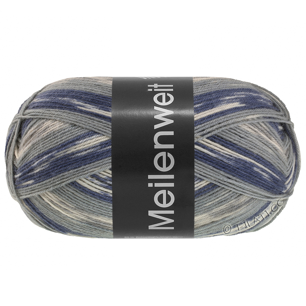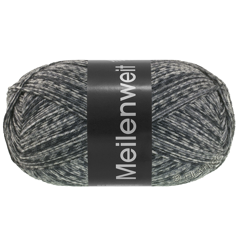 Lana Grossa Meilenweit 100 Black Denim Mix står for trendy strømpemode i et cool jeans-look.