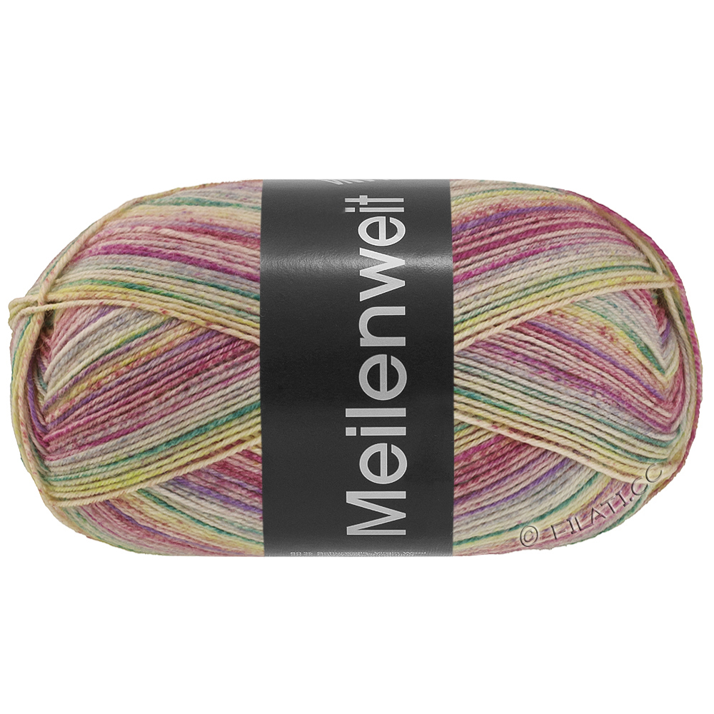 Lana Grossa Meilenweit 100 Zucchero står for søde farvespil og pålidelig kvalitet. Det 4-trådede strømpegarn af blød uld og polyamid giver høj bærekomfort, et jævnt maskebillede og langvarig slidstyrke.
