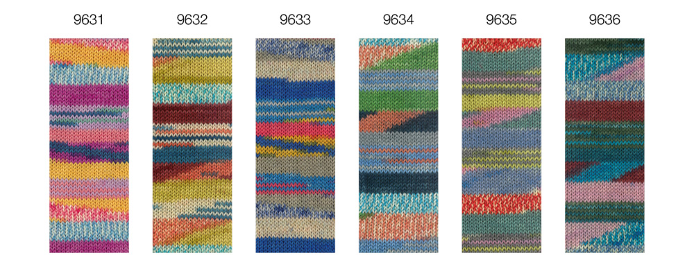 Mellemtykt 6-tråds sokkegarn i 80% ren ny uld. Ensfarvet meleret (Tweed), og flerfarvet og selvmønstrende (Print).