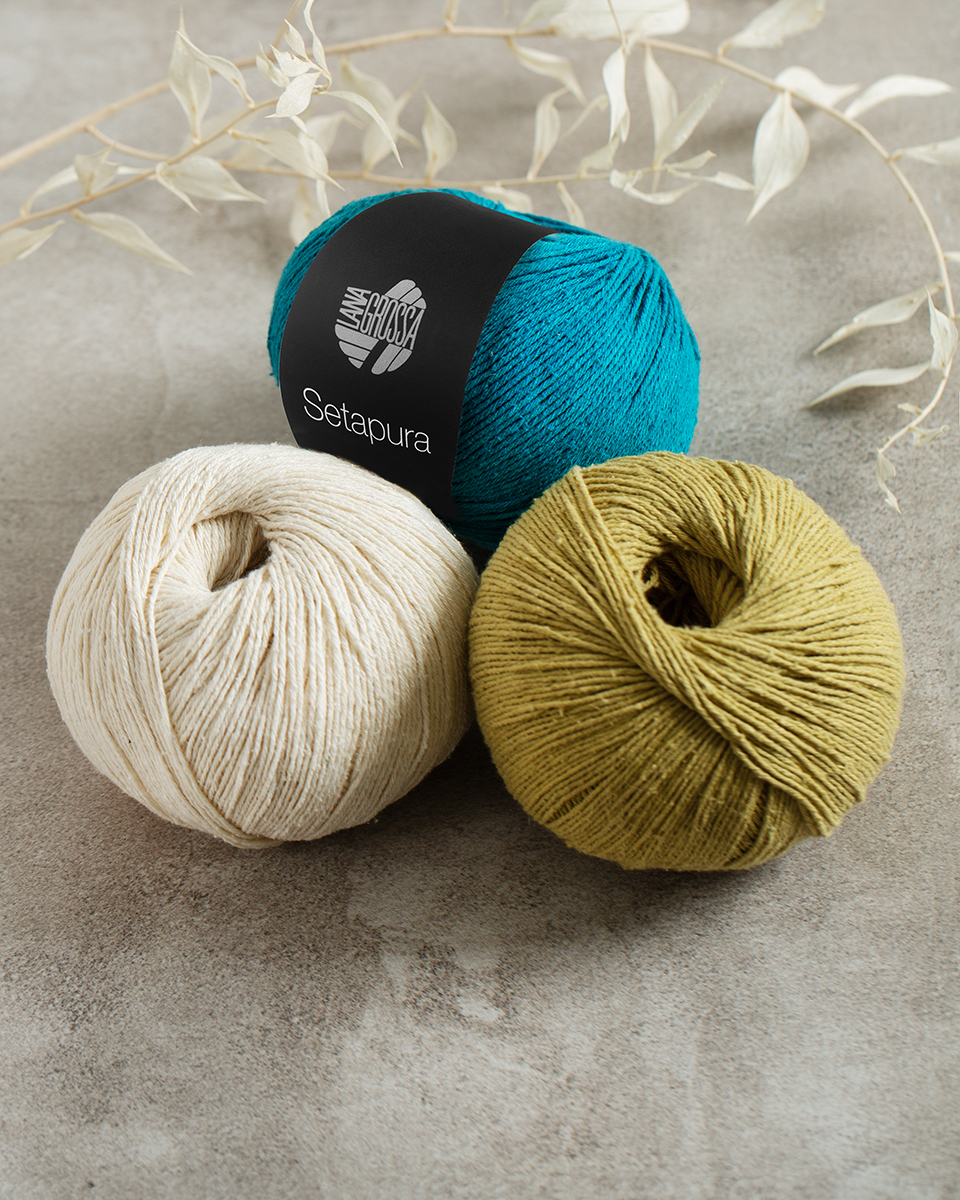 Setapura er et højkvalitets sommergarn af ren silke, som begejstrer med sin eksklusive glans, flydende fald og kølige fornemmelse. Den glatte overflade giver et særligt jævnt maskebillede og gør garnet til det perfekte valg til elegante sweatre, toppe, sjaler eller fine accessories. Ideelt for alle, der værdsætter naturlig elegance og luksuriøs bærekomfort.