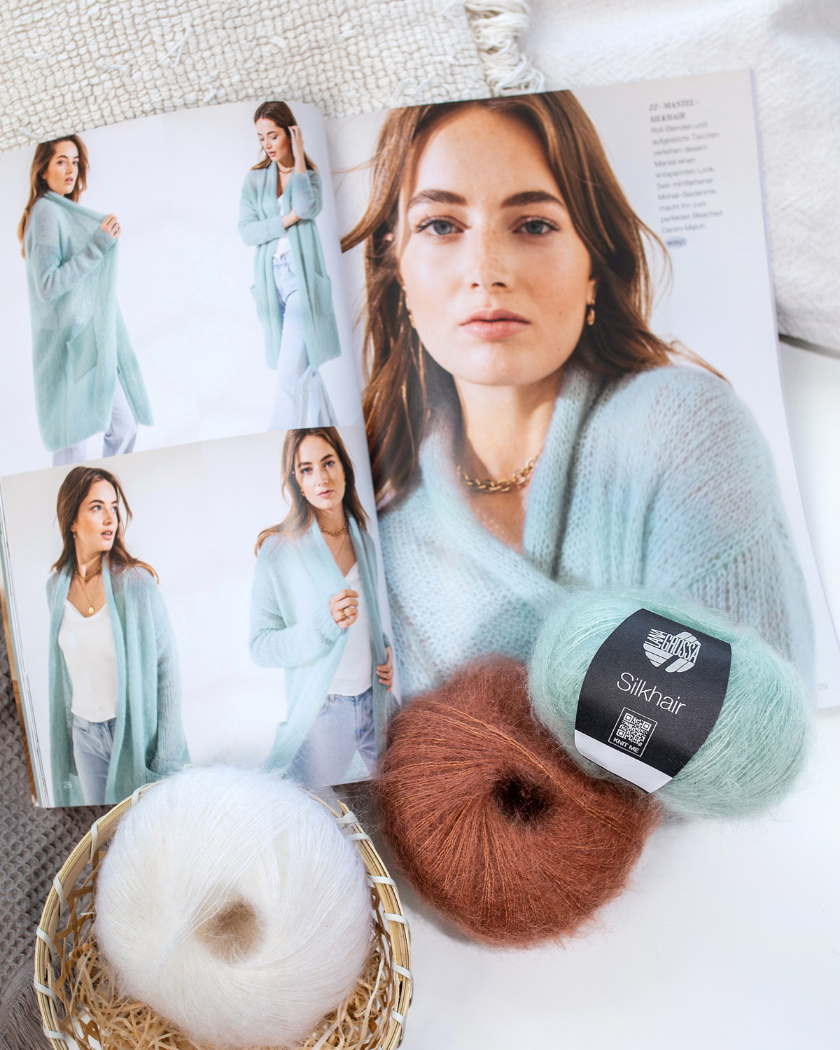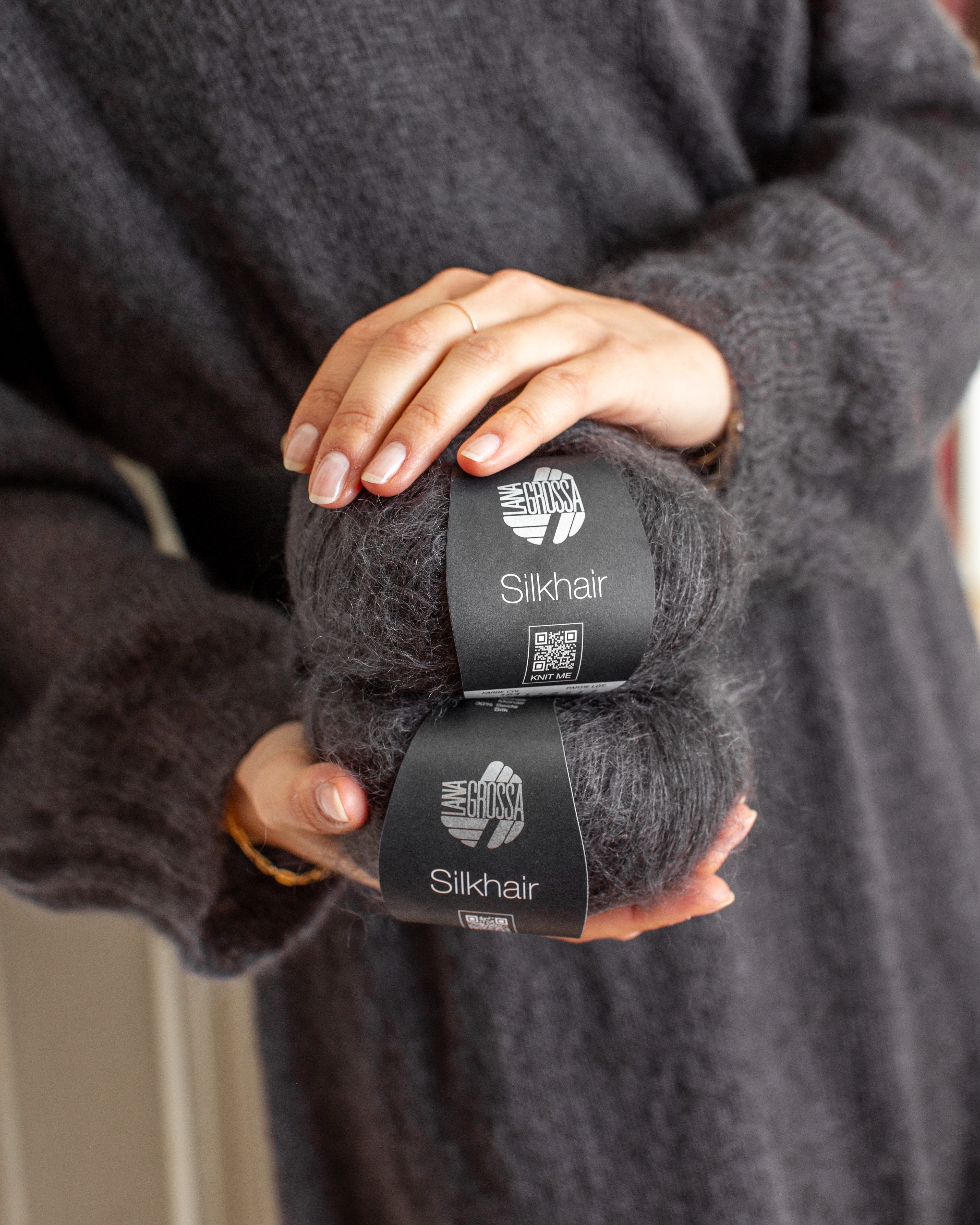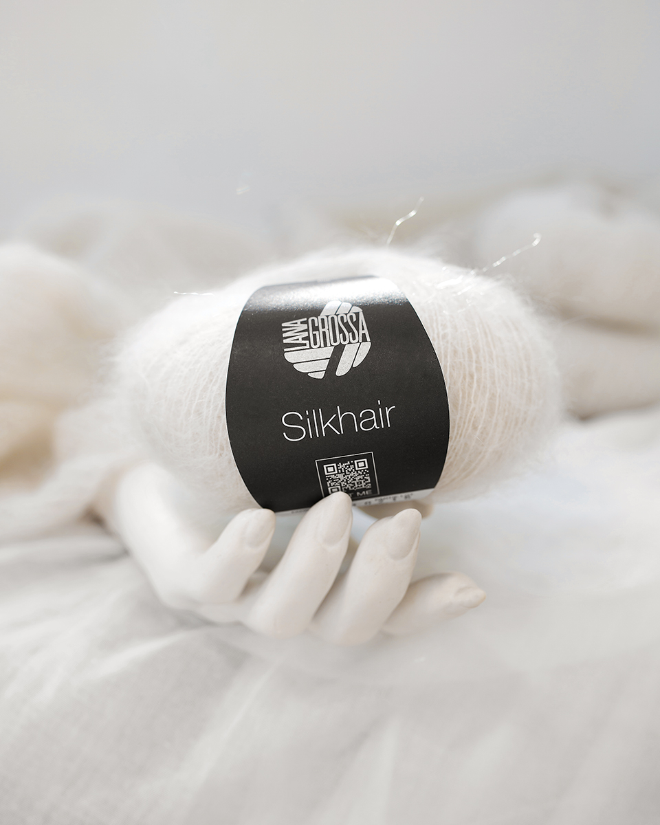 Silkhair er det populære lacegarn fra Lana Grossa – en luksuriøs blanding af superkid mohair og silke, der imponerer med lethed, subtil glans og eksklusiv fluff. Ideelt til fine sjaler, sweatre, luftige cardigans eller som følgetråd for elegante effekter. Uanset om det strikkes alene for et transparent, luftigt resultat eller dobbelt for mere volumen – Silkhair giver hvert strikstykke et eksklusivt, feminint præg.