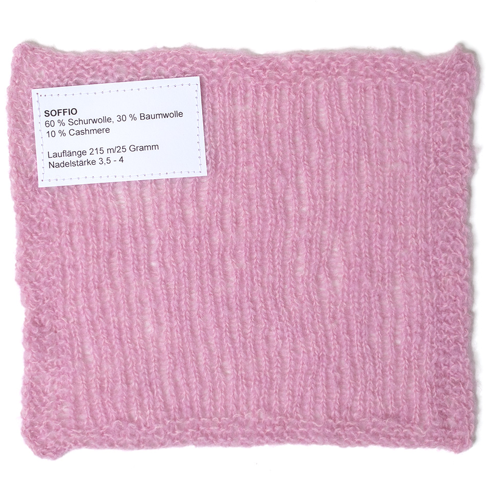 Soffio er et delikat lacegarn med et eksklusivt præg – fremstillet af en højkvalitets blanding af merinould, bomuld og cashmere. Det er særligt let, blødt og fint, ideelt til sarte strikstykker med elegant udstråling. Uanset om det er luftige sweatre, hyggelige sjaler eller fine accessories – Soffio giver hvert projekt et blidt, luksuriøst touch.