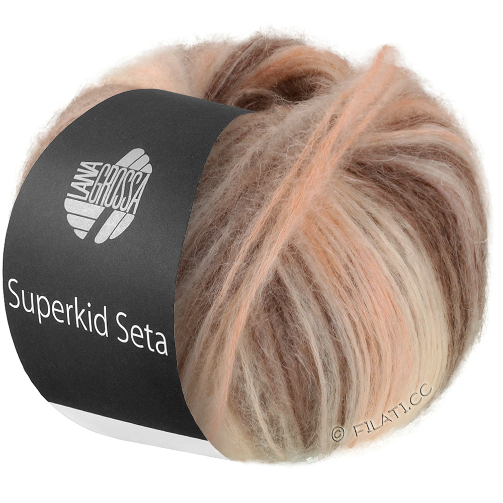 Superkid Seta er et eksklusivt garn af fineste superkid mohair og skinnende silke – let som en sky, blidt at røre ved og luksuriøst i udtrykket. Den fine fluff og den subtile glans giver hvert strikstykke et elegant, feminint præg. Også ideelt som følgetråd, når du vil give dine projekter mere dybde og raffinement.