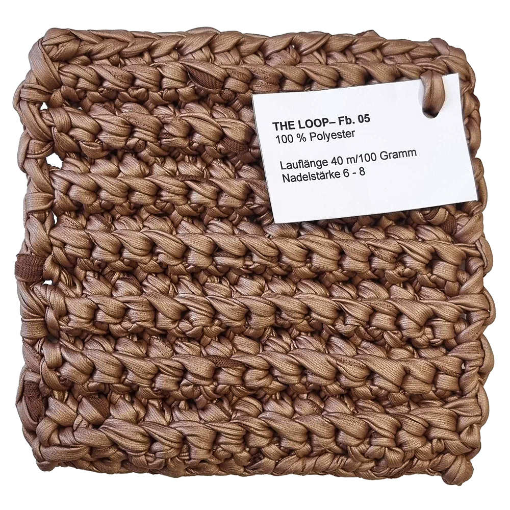 Lana Grossa The Loop er et usædvanligt effektgarn med moderne båndstruktur og en diskret glans. Den flade, let skinnende overflade giver strikke- og hækleprojekter en særlig dybde og skaber et stilfuldt look med struktur. Ideelt til kreative accessories som tasker eller dekorative projekter – overalt hvor form og materiale er i fokus. Med The Loop opstår udtryksfulde favoritstykker, der straks fanger blikket.