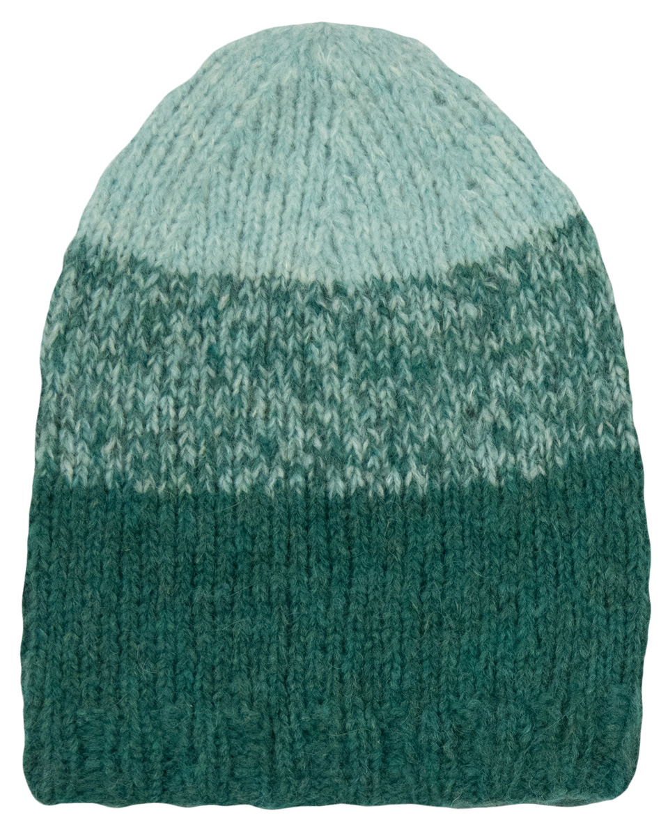 Lana Grossa „Nuvoletta“ (42% alpakka (baby), 42% ren ny ull (merino extrafine), 16% polyamid, løpelengde ca. 250 m/50 g), 50 g hver i pastelltyrkis (farge 9) og blågrønn (farge 10); settpinner nr. 5,0.