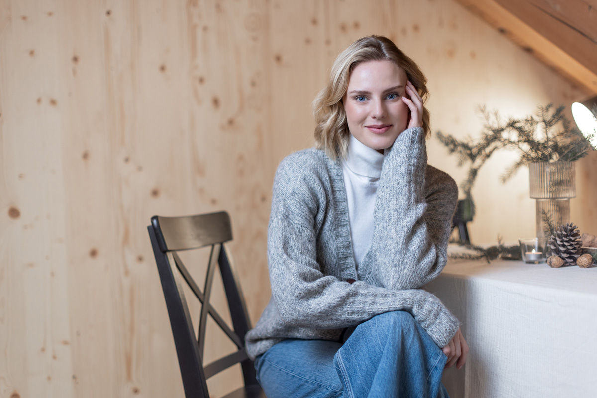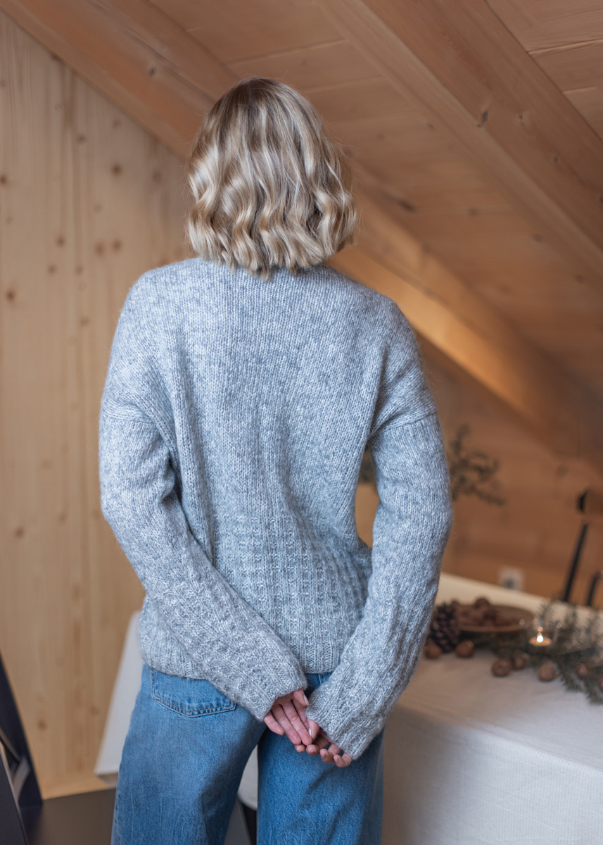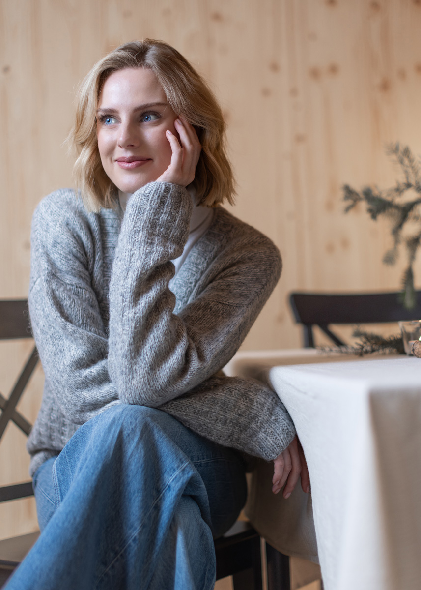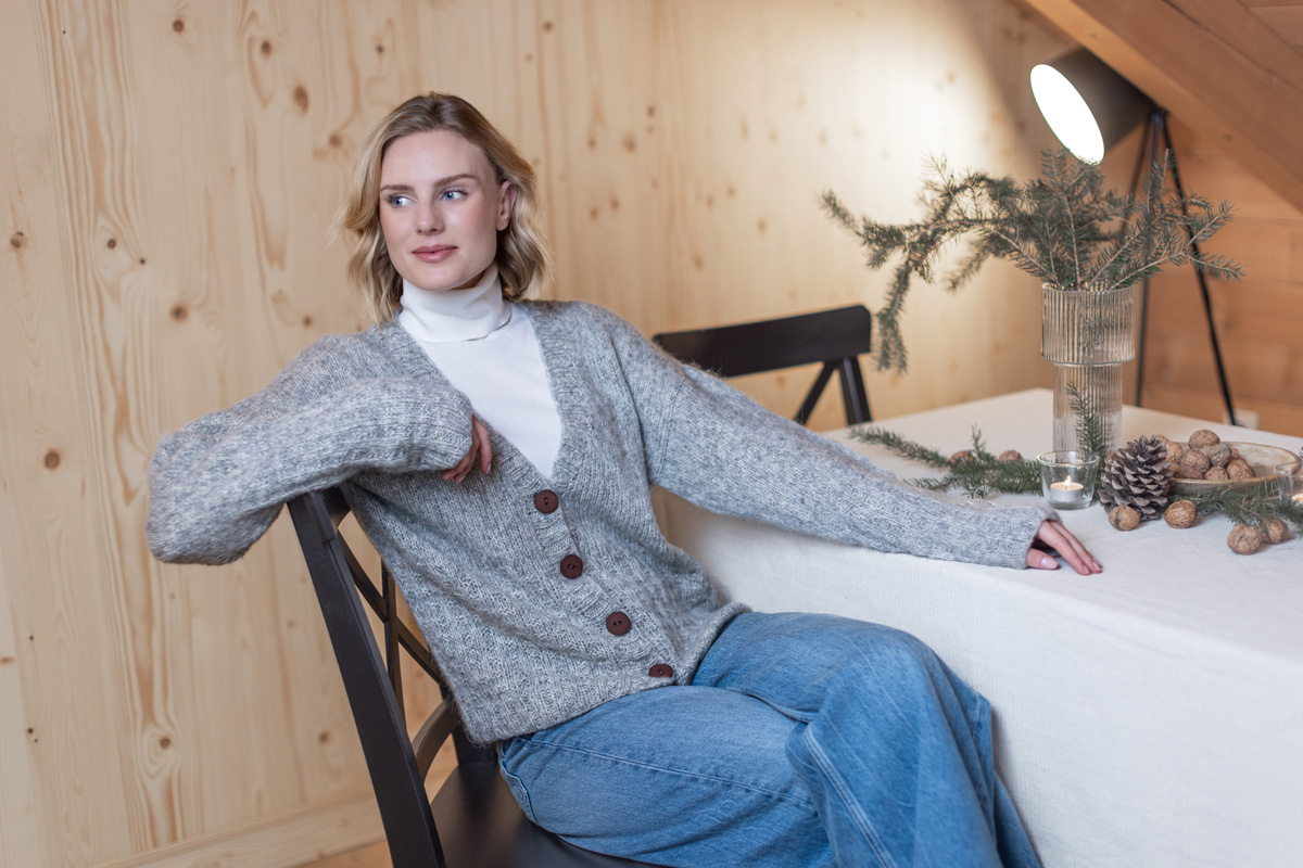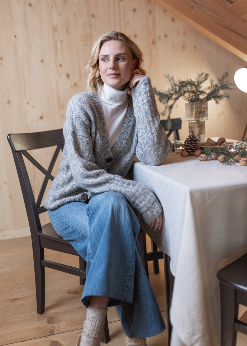 42% alpaka (baby), 40 % bomuld, 18% ren ny uld (merino extrafin)