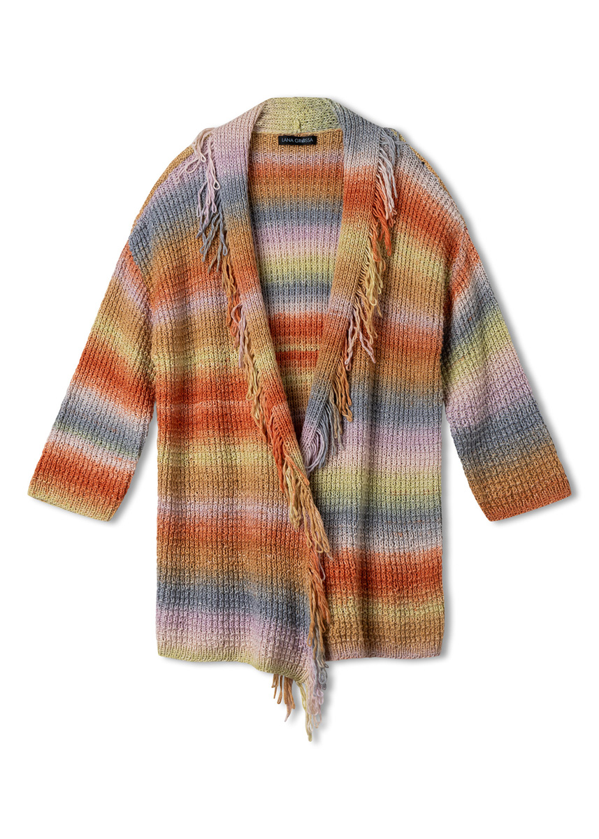 Lana Grossa Cotonella (100% (pima) bomull, løpelengde 280 m/100 g), 600 (700 - 700) g i Zartflieder/Natur/Vanille/grå/rust/kamel (farge 20); strikkepinner nr. 4,5.