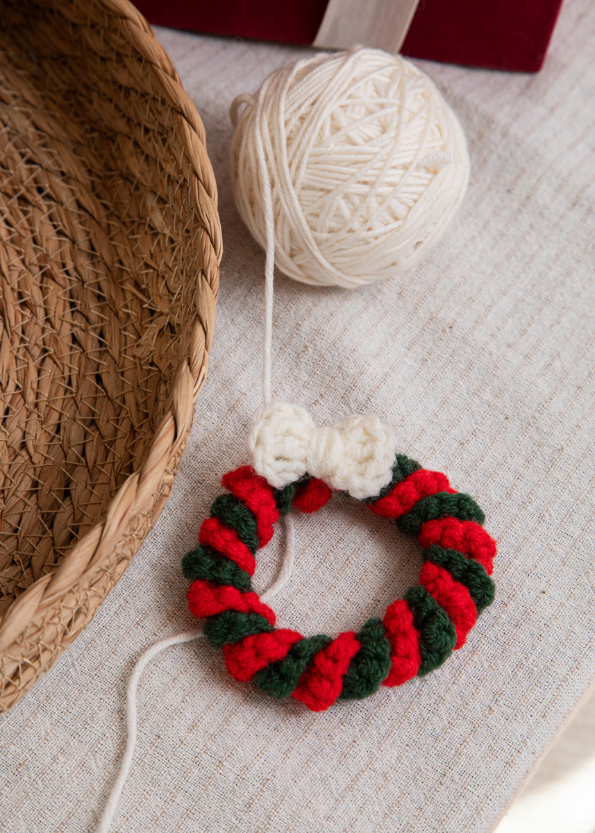 Lana Grossa MERINO MISCELA 50 % ren ny merinoull, 50 % polyacryl Löplängd: ca. 100 m / 50 g • hver 50 g mörk grön (färg 17), resedagrön (färg 18) och röd (färg 12) ELLER • hver 50 g mörk grön (färg 17), röd (färg 12) och vit (färg 1) ELLER • hver 50 g vit (färg 1), beige (färg 2) och röd (färg 12) • Virknål nr. 5