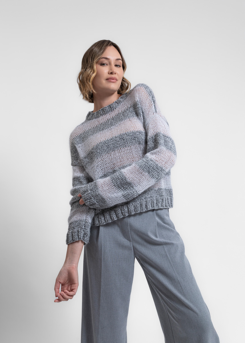 Lana Grossa LUCIDA 58% ren ny uld merino, 42% viskose Løbelængde: ca. 100 m / 50 g • 200 (200 - 250 - 250 - 300 - 300) g lysgrå (farve 7)
