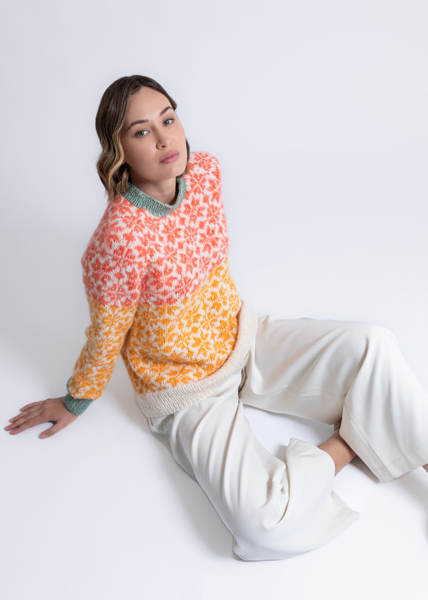 • 100 (100 - 100 - 100 - 100 - 150) g mandarin meleret (farve 31) • 50 g mint (farve 14)
