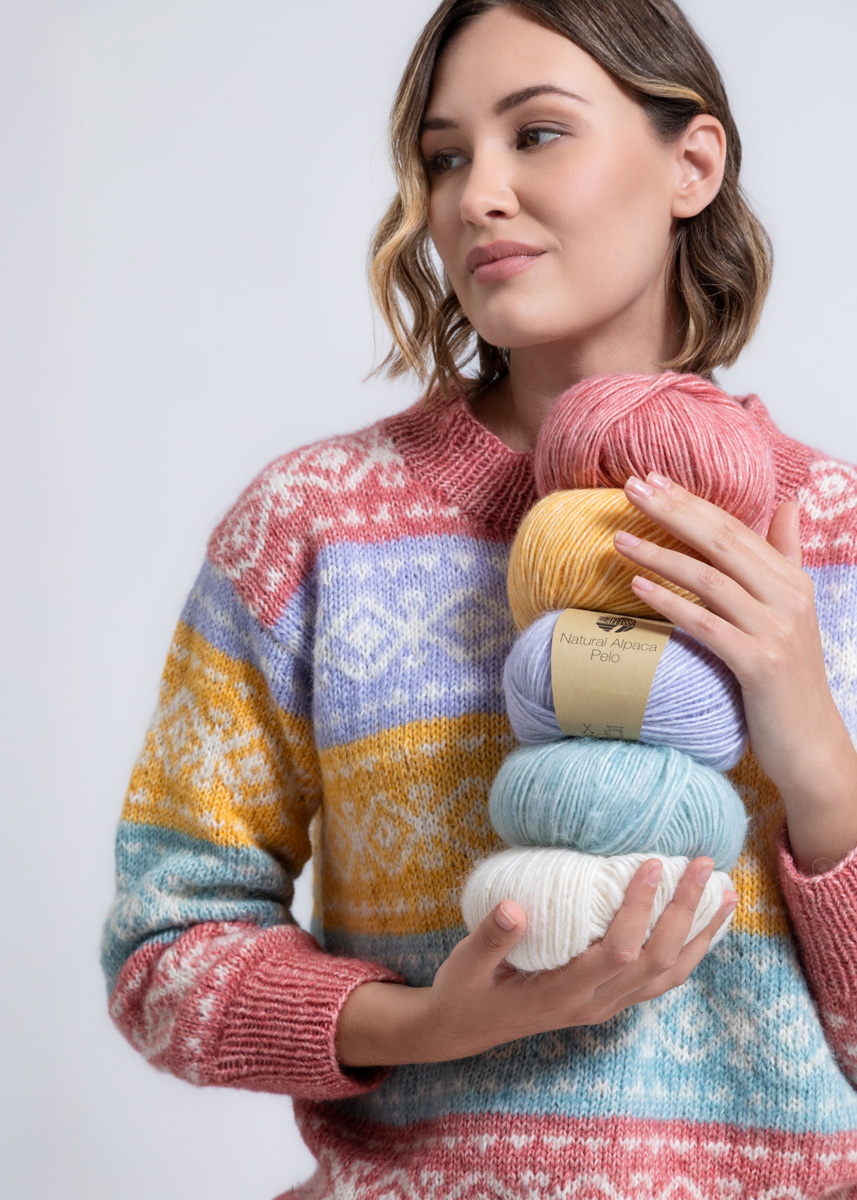 63 % bomuld, 31 % alpaka, 6 % ren ny uld merino