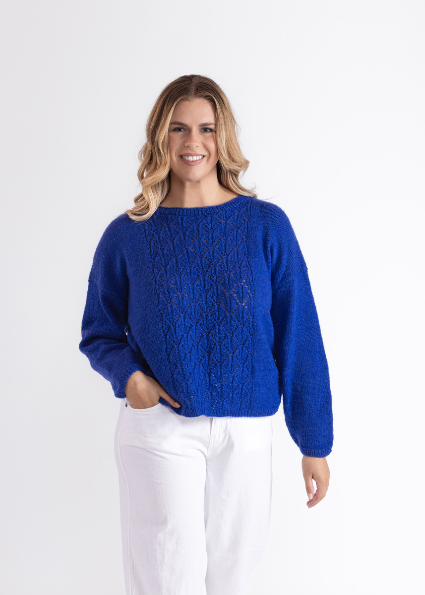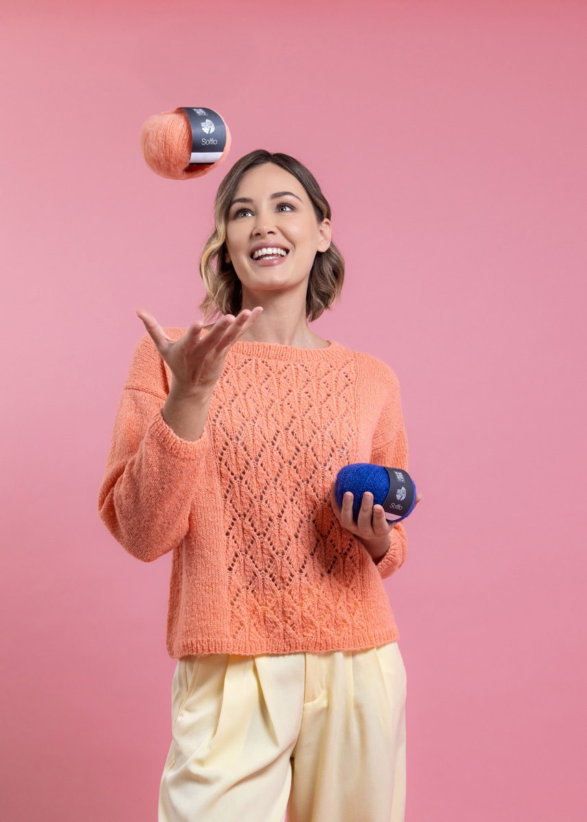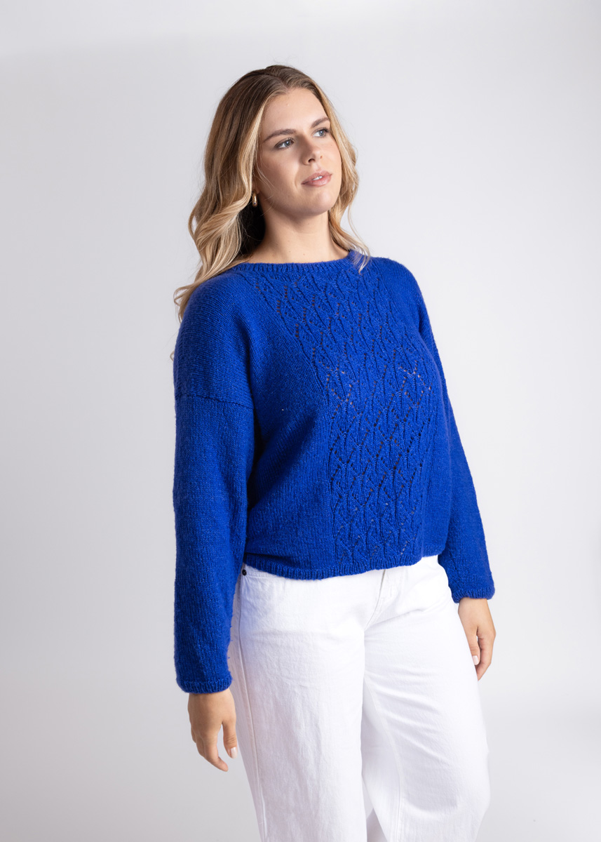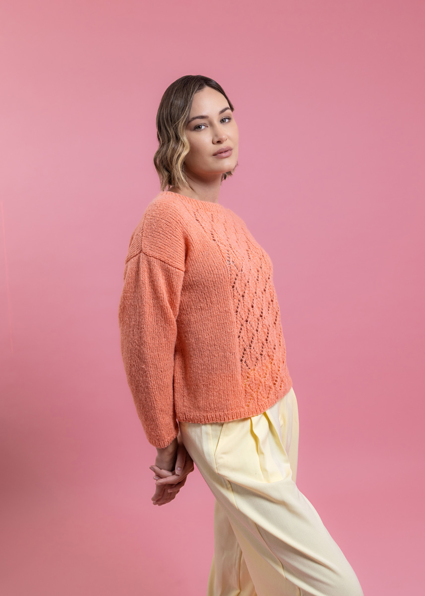 Pulloveren strikkes gennemgående med dobbelt tråd. Modellen har en samlet længde på 53 (55 - 57 - 59 - 61 - 63) cm og har en brystvidde som er 22 cm større end en brystomkreds på 80 cm (18 cm større end en brystomkreds på 88 cm - 14 cm større end en brystomkreds på 96 cm - 14 cm større end en brystomkreds på 104 cm - 10 cm større end en brystomkreds på 116 cm - 10 cm større end en brystomkreds på 128 cm).