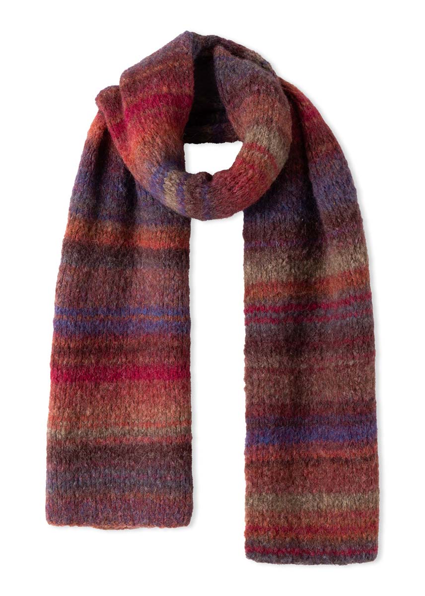 Lana Grossa Gigante Multi (70% alpakka (fein), 30% polyamid, løpelengde 150 m/50 g), 250 g i Vinrød/rødbrun/ grårød/aubergine/khaki/gråbrun (farge 103); 1 rundpinne nr. 5,5, 80 cm lang.