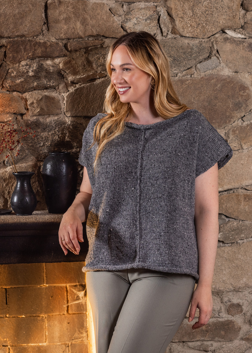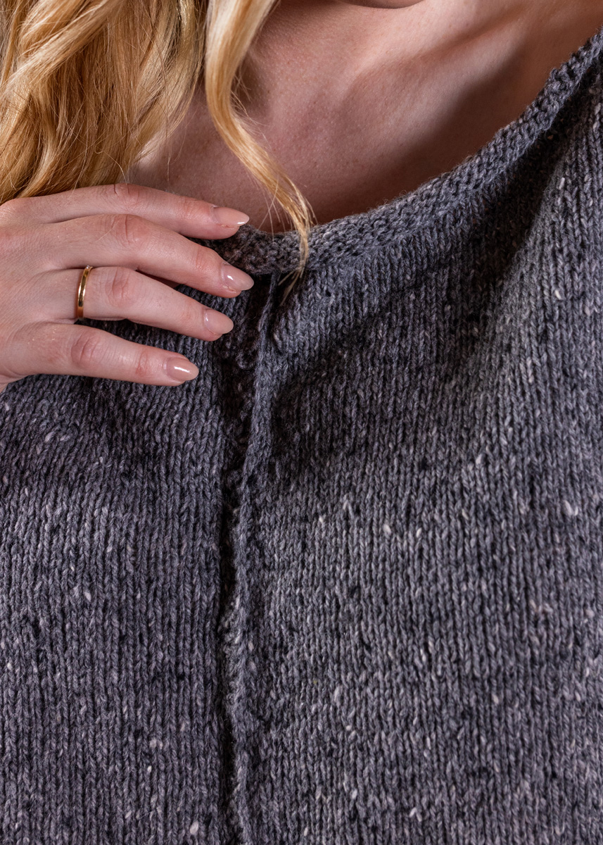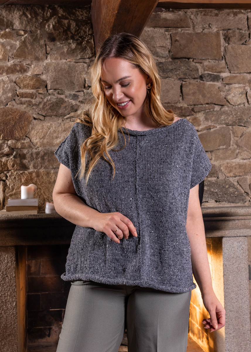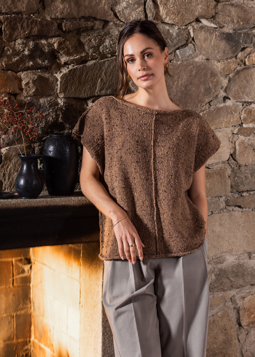 • 250 (250 - 300 - 300 - 350 - 350) g nougat meleret (farve 109) eller grå meleret (farve 104) • Pinde nr. 3,5