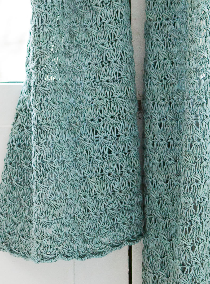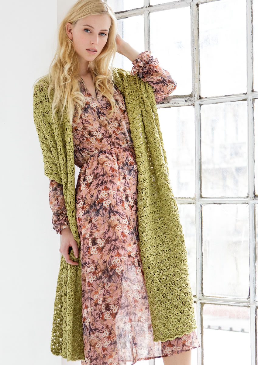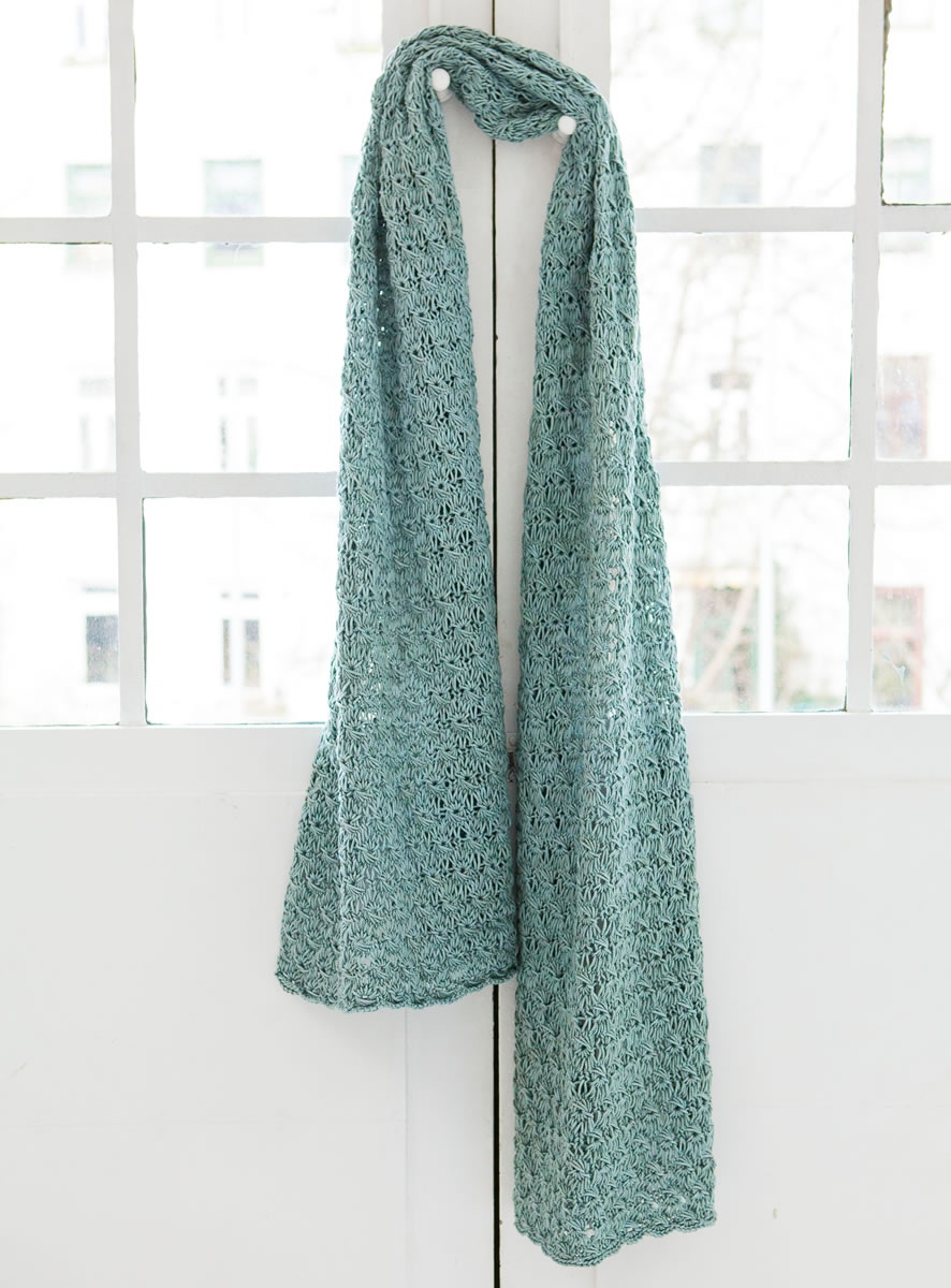 Lana Grossa 365 Yak (66 % bomuld, 22 % polyamid, 12 % yak, løbelængde 145 m/50 g) 500 g grønbeige/lysegrå (fv 5) (450 g mint/grå (fv 9)); strikkepinde nr. 6.