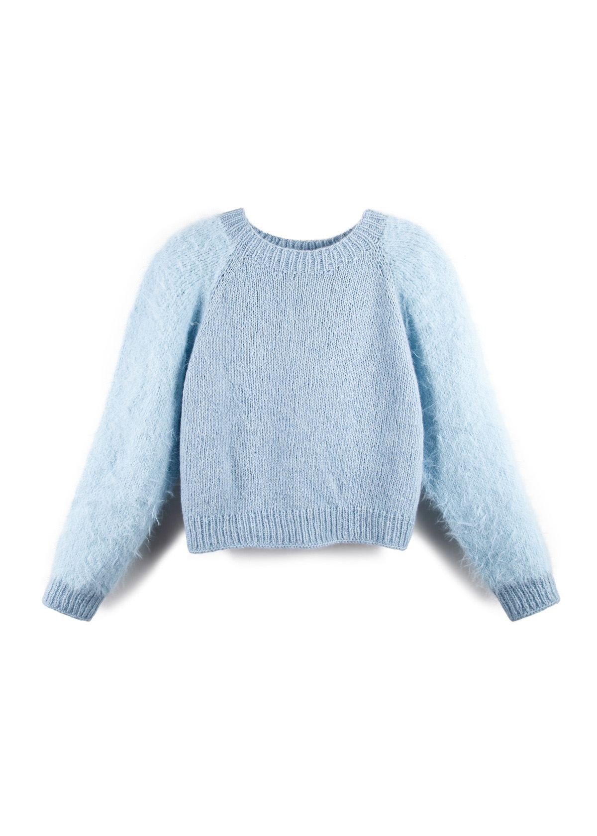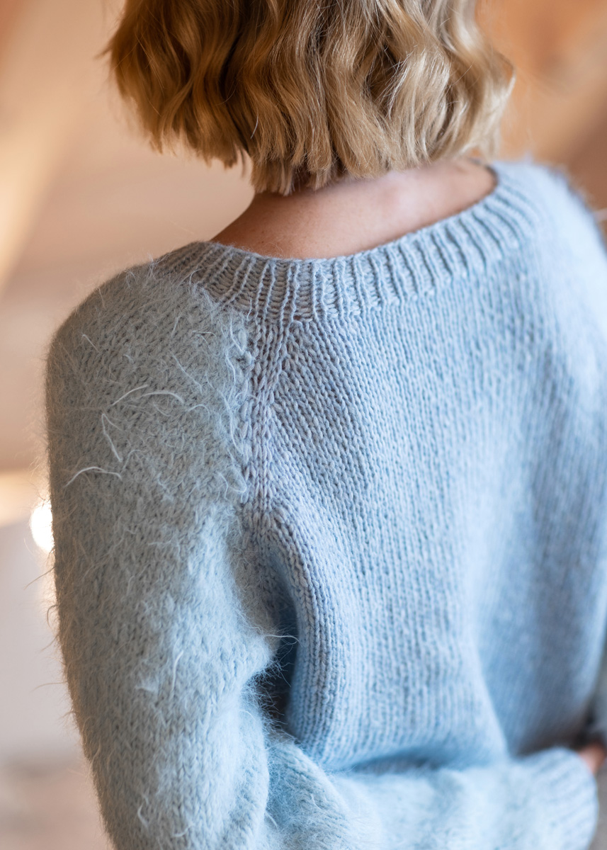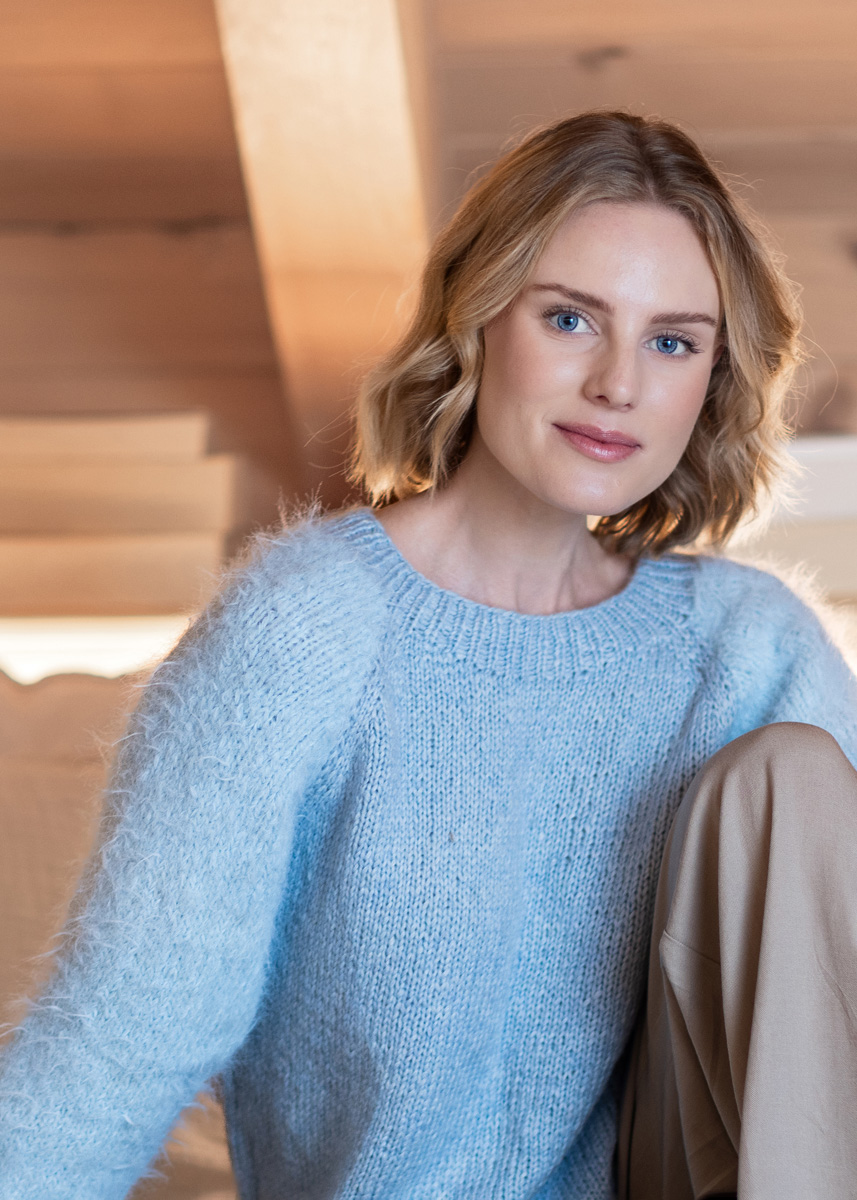 Pulloveren strikkes sømløst i ét stykke oppefra og ned. Til slutningen af bærestykket arbejdes der med intarsiateknik. Modellen har en samlet længde på 50 (52 - 54 - 54 - 54 - 56) cm og har en brystvidde som er 19 cm større end en brystomkreds på 80 cm (17 cm større end en brystomkreds på 88 cm - 14 cm større end en brystomkreds på 96 cm - 11 cm større end en brystomkreds på 104 cm - 9 cm større end en brystomkreds på 116 cm - 7 cm større end en brystomkreds på 128 cm).