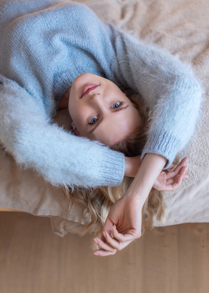 47 % alpaka, 45 % bomuld, 8 % ren ny uld