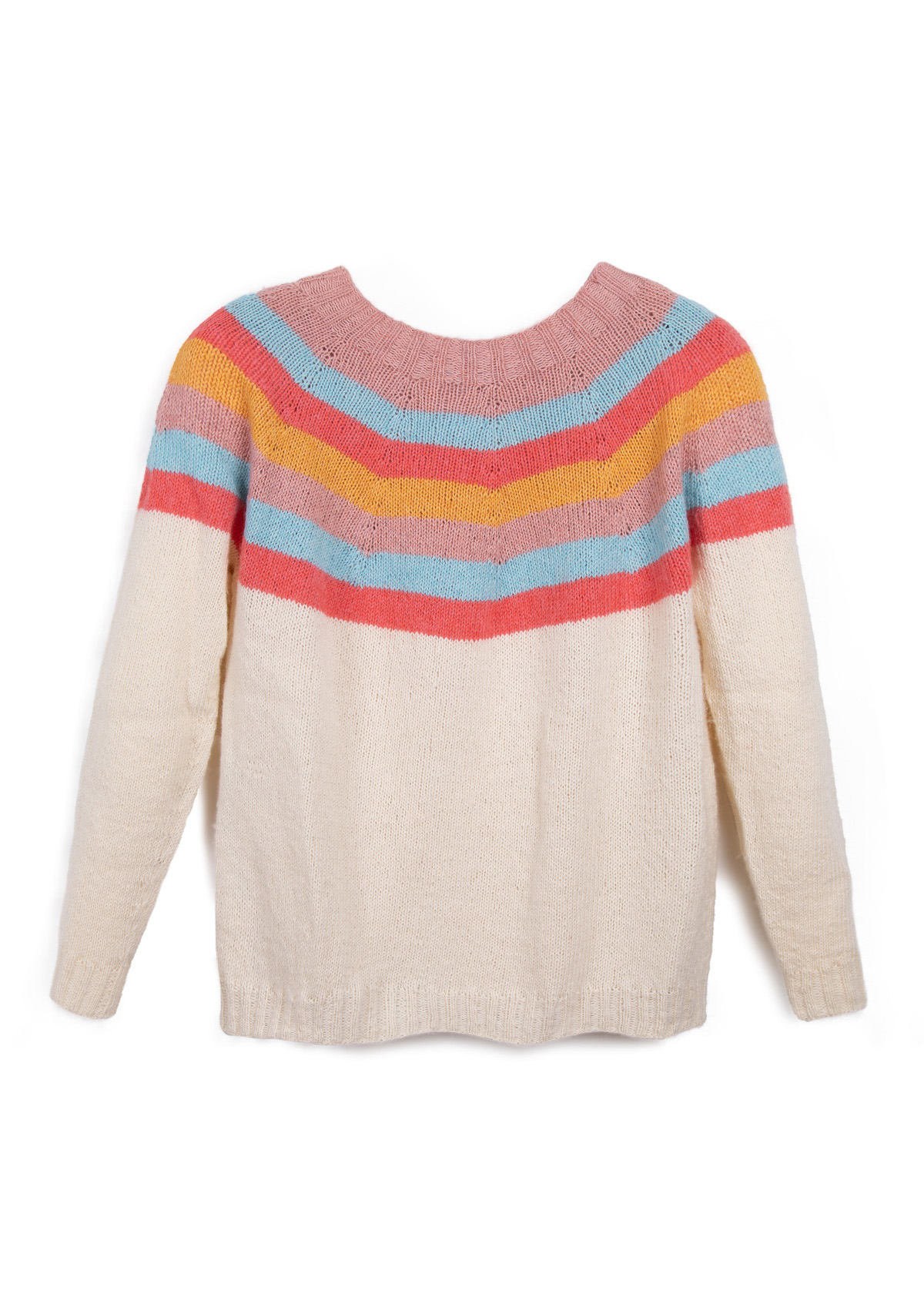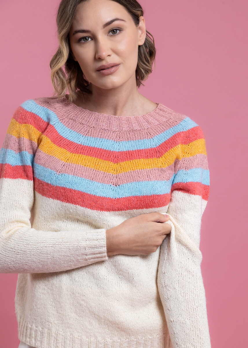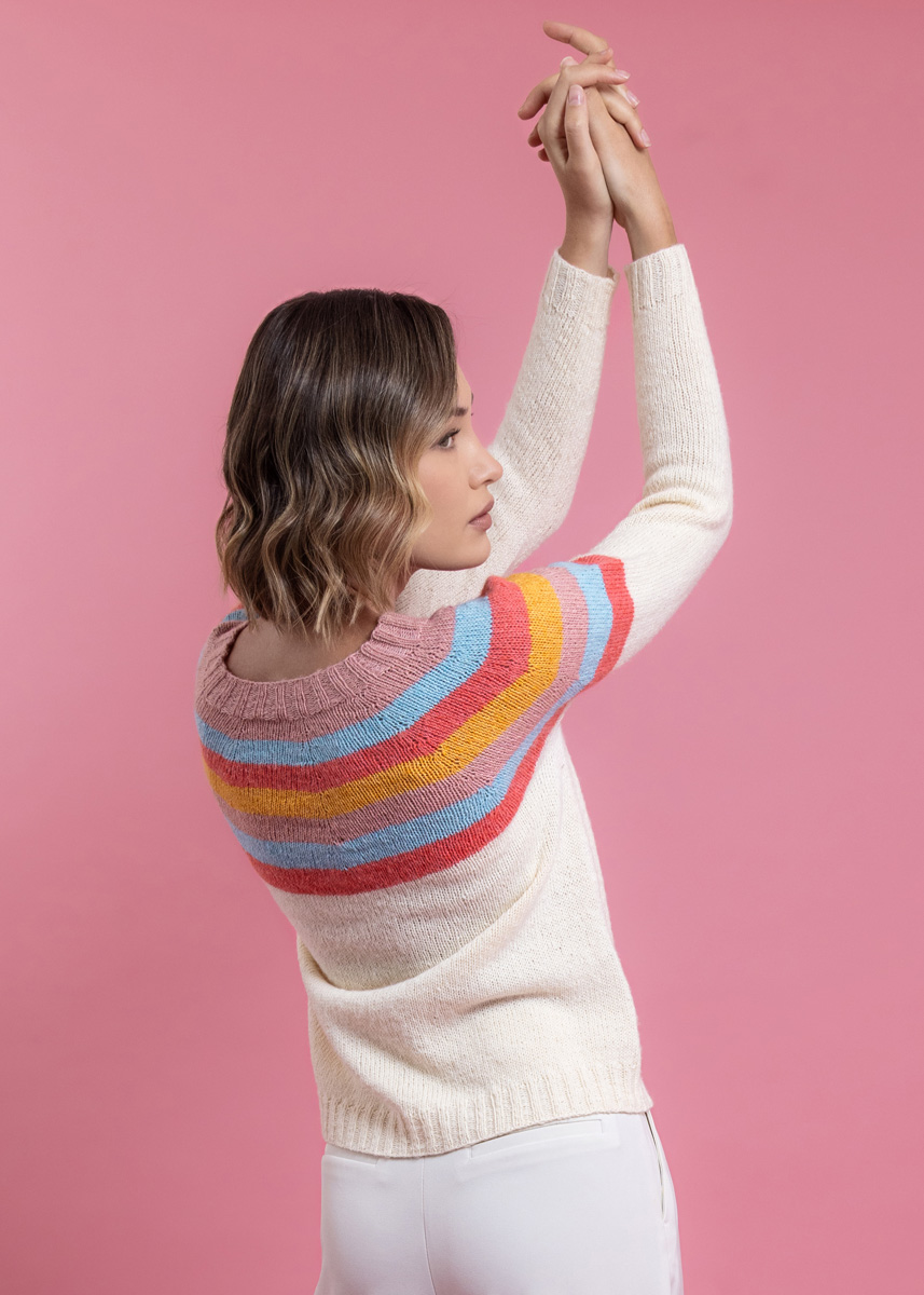 Pulloveren strikkes sømløst i ét stykke ovenfra og ned. Modellen har en samlet længde på 55 (57 - 59 - 61 - 63 - 65) cm og har en brystvidde som er 14 cm større end en brystomkreds på 80 cm (14 cm større end en brystomkreds på 88 cm - 14 cm større end en brystomkreds på 96 cm - 12 cm større end en brystomkreds på 104 cm - 14 cm større end en brystomkreds på 116 cm - 14 cm større end en brystomkreds på 128 cm).
