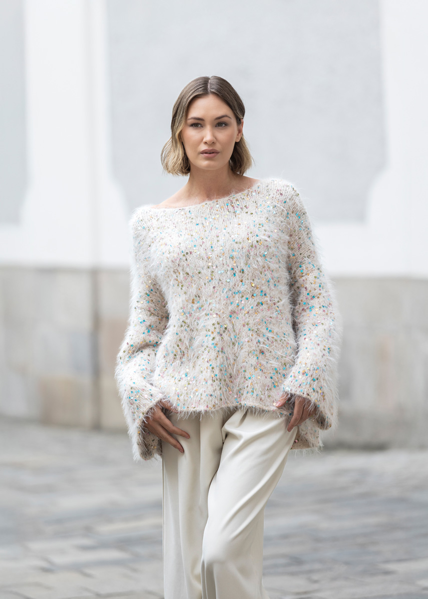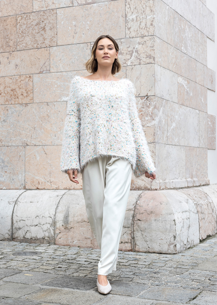 Lana Grossa BASTA 50 % polyamid, 50 % ren ny uld merino Løbelængde: ca. 100 m / 50 g • 400 (450 - 450 - 500 - 500 - 550) g lysbeige (farve 2)