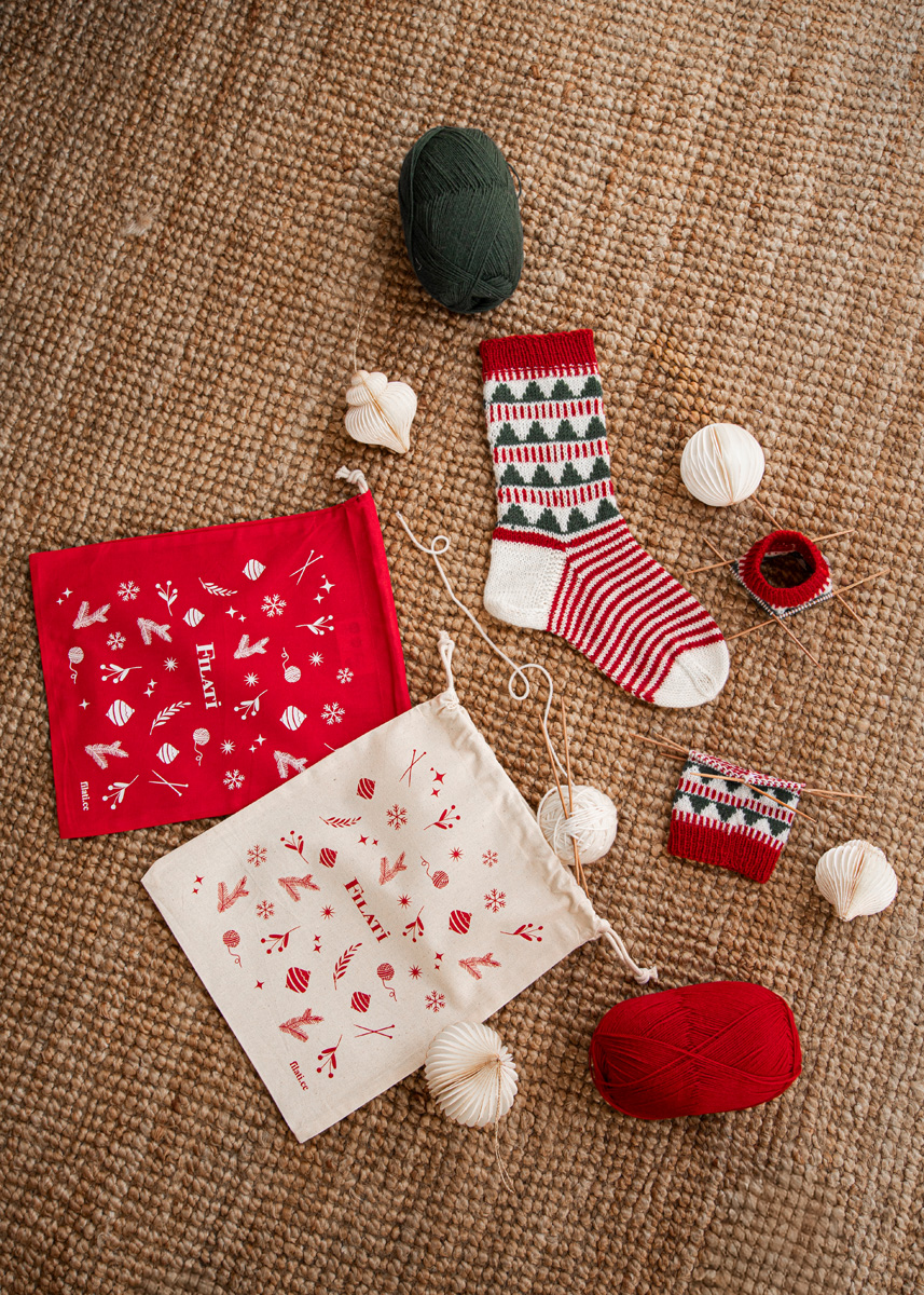 Uanset om det er som en stilfuld gaveindpakning eller en trofast ledsager til dit næste strikkeprojekt – disse kærligt designede projektposer i festlig julet stil er alsidige og garanteret til at sprede julestemning.
