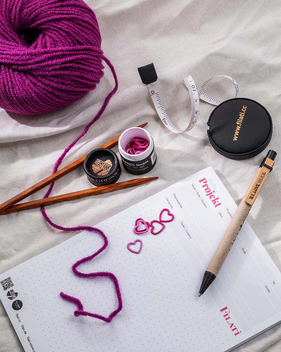 FILATI projektblokken er den ideelle følgesvend til alle, der ikke kun vil have deres strikke- og hækleidéer i hovedet, men også struktureret ned på papir. Særligt udviklet til kreative projekter hjælper de overskuelige sider dig med at bevare overblikket – fra første idé til sidste maske.